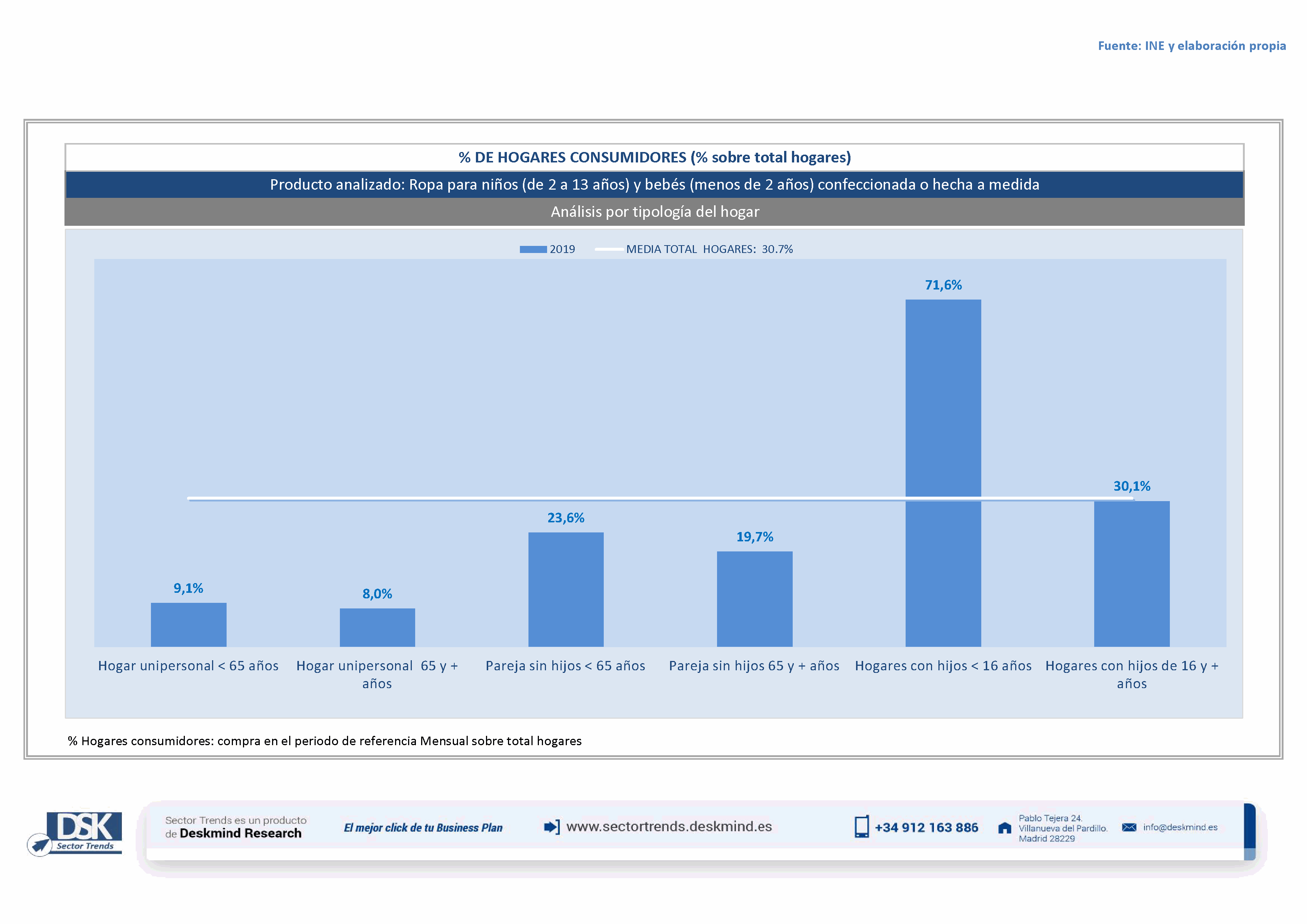 Infografía % hogares por tipo hogar de Ropa para niños (de 2 a 13 años) y bebés (menos de 2 años) confeccionada o hecha a medida