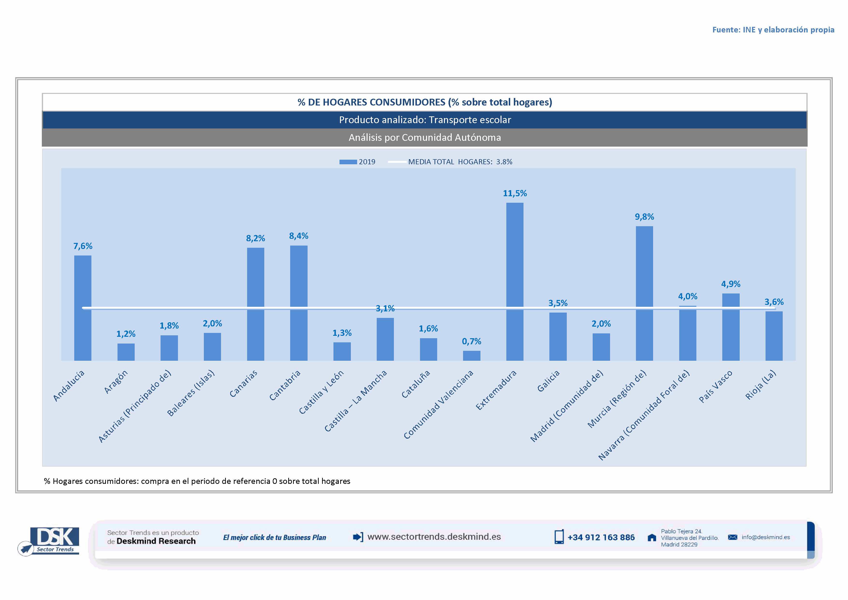 Infografía % hogares por comunidad autónoma de Transporte escolar