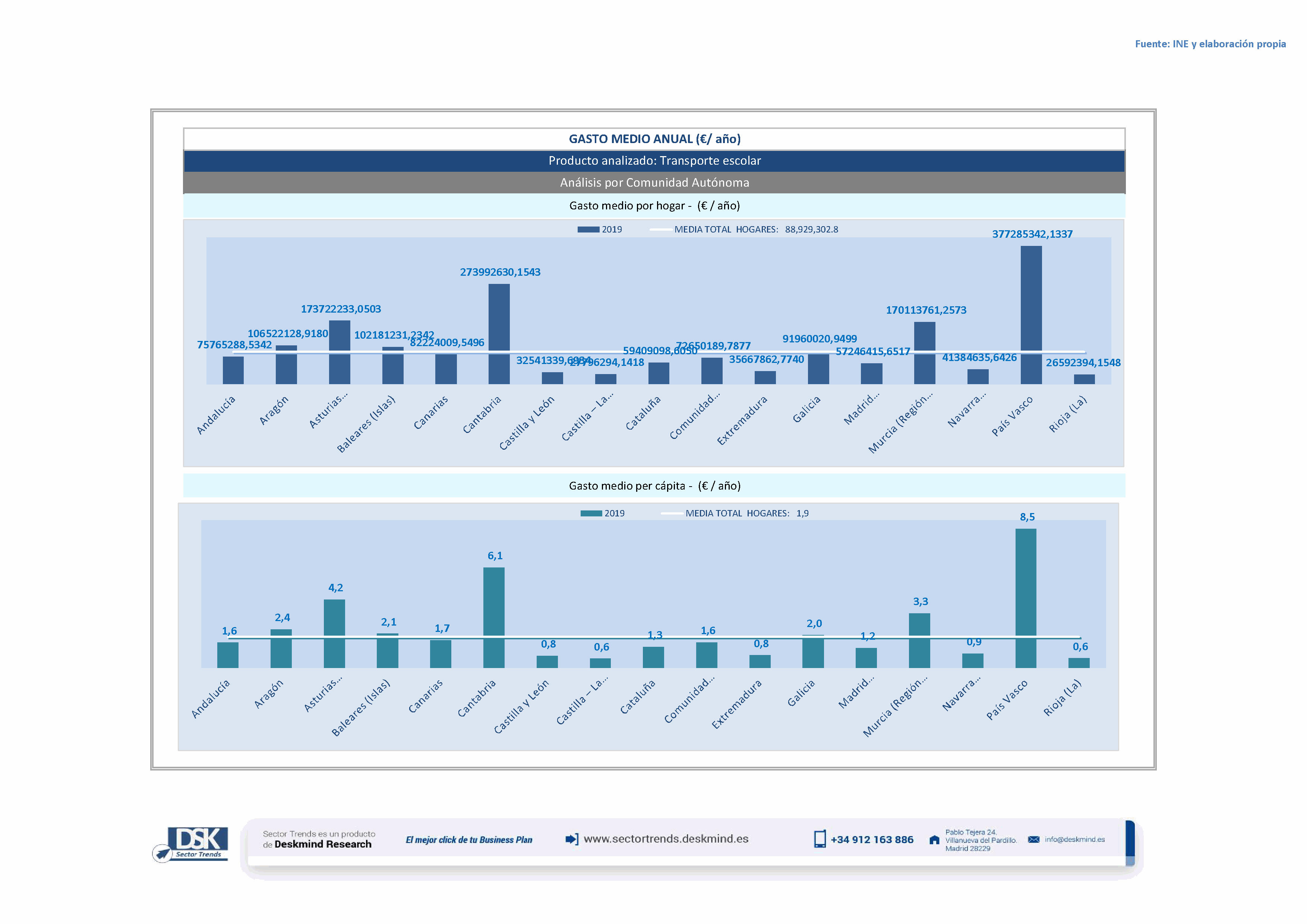 Infografía gasto medio por comunidad autónoma de Transporte escolar