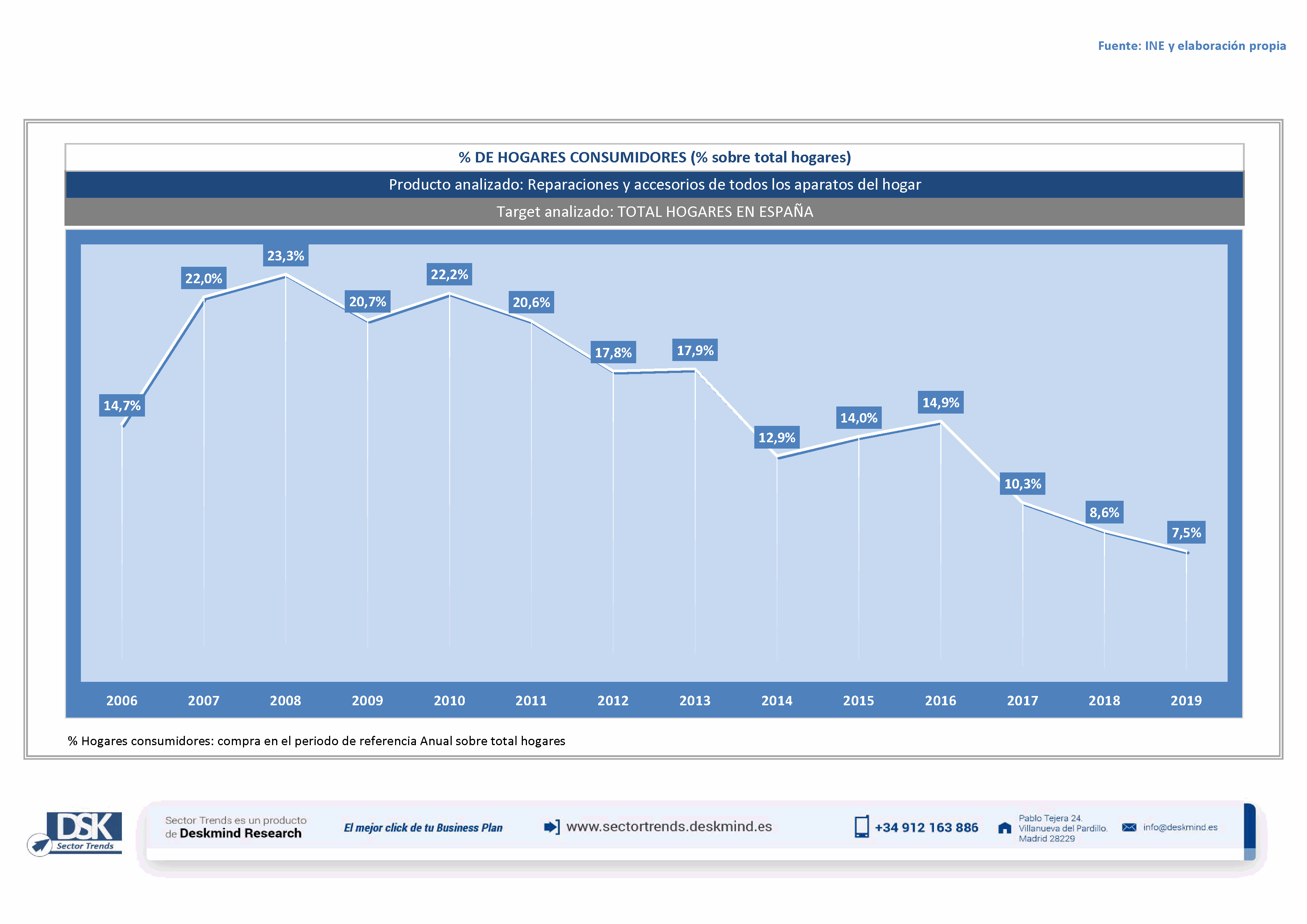 Gráfico evolutivo % de hogares consumidores de Reparaciones y accesorios de todos los aparatos del hogar