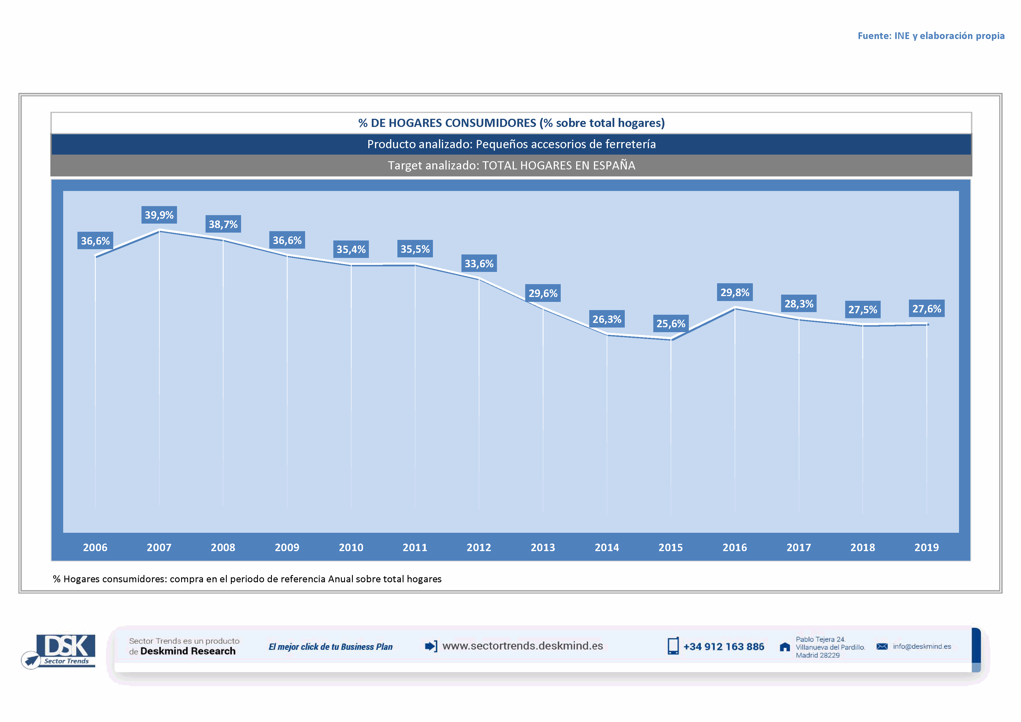 Gráfico evolutivo % de hogares consumidores de Pequeños accesorios de ferretería