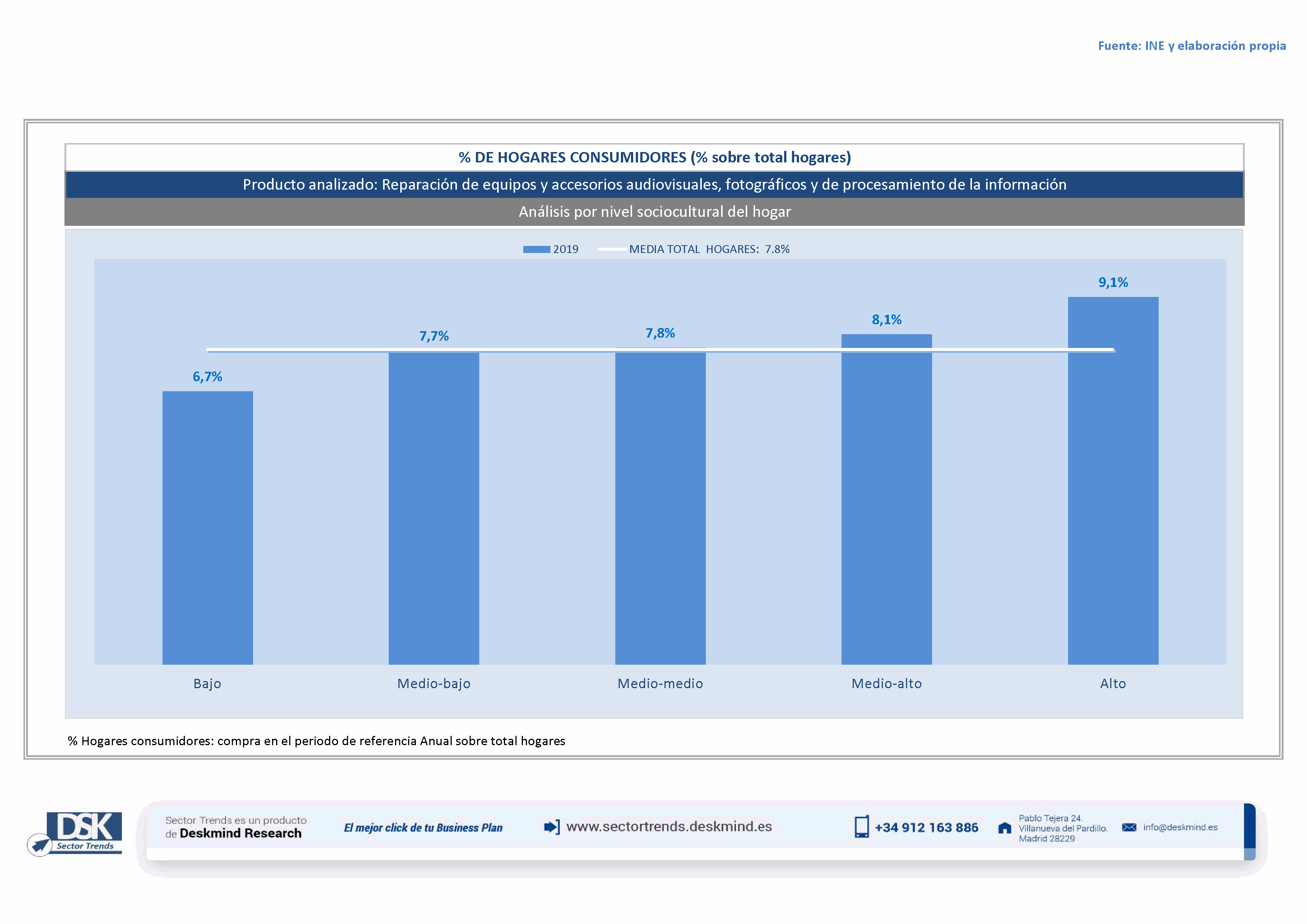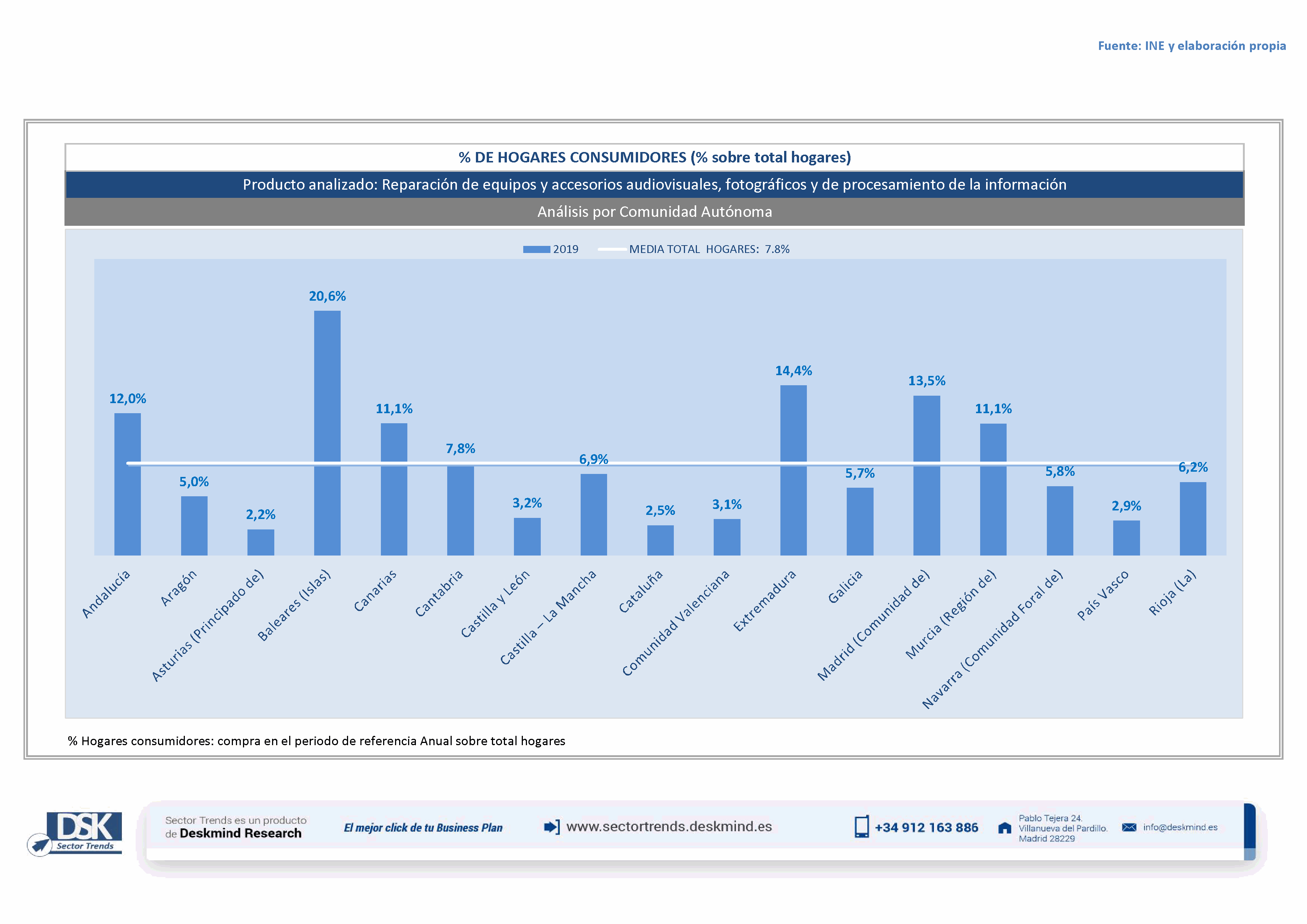 Infografía % hogares por comunidad autónoma de Reparación de equipos y accesorios audiovisuales, fotográficos y de procesamiento de la información