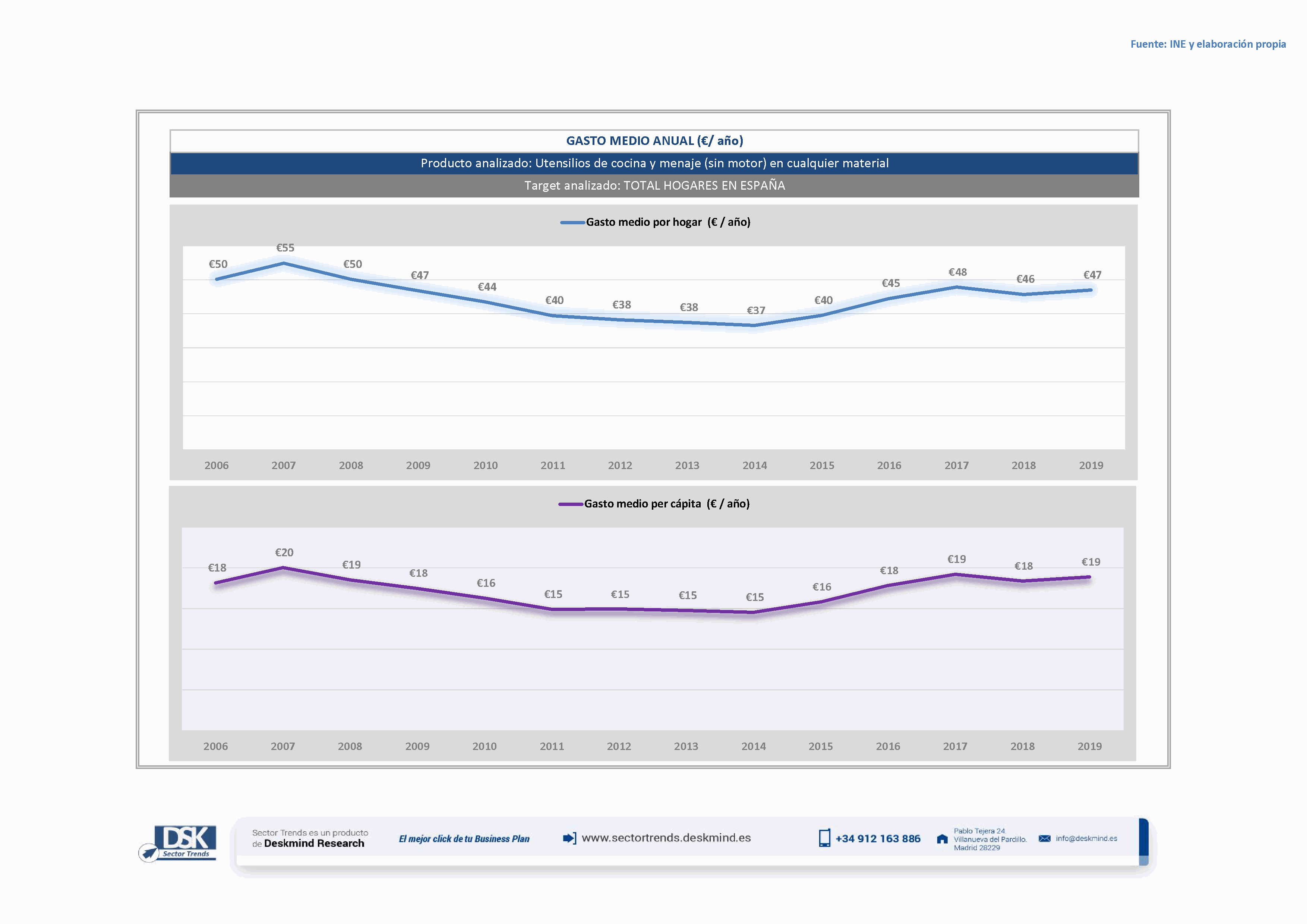 Cuadro estadístico gasto medio de Utensilios de cocina y menaje (sin motor) en cualquier material