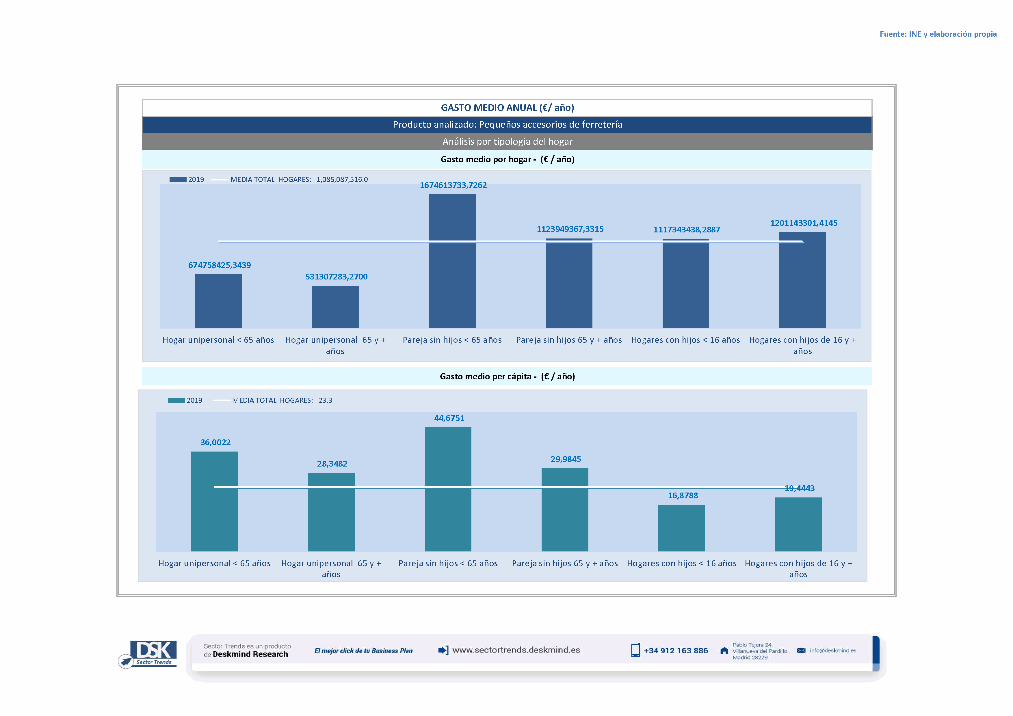 Infografía gasto medio por tipo hogar de Pequeños accesorios de ferretería
