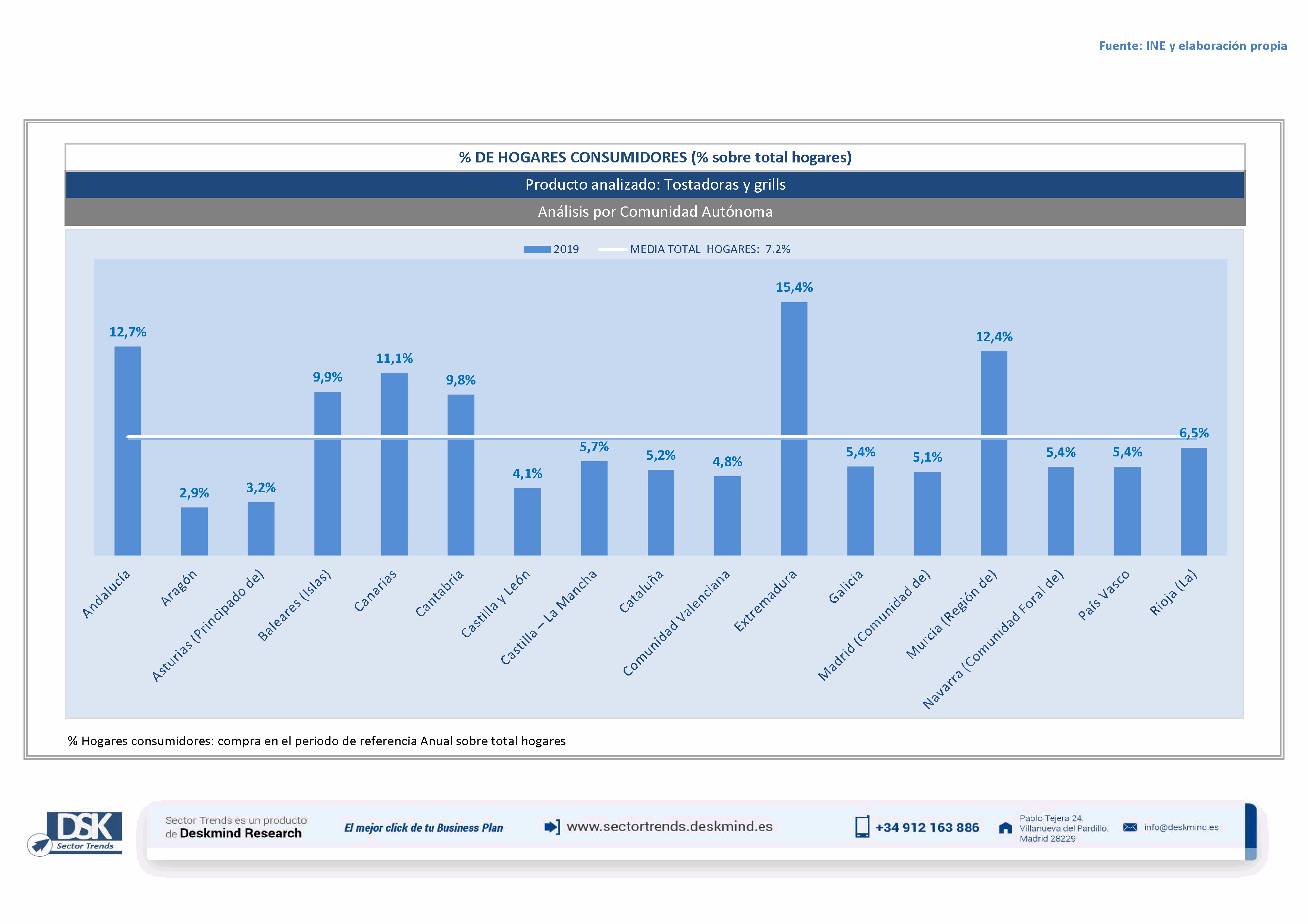 Infografía % hogares por comunidad autónoma de Análisis Total Sector Pequeños aparatos para el hogar (pequeños electrodomésticos, accesorios eléctricos, pequeñas herramientas)