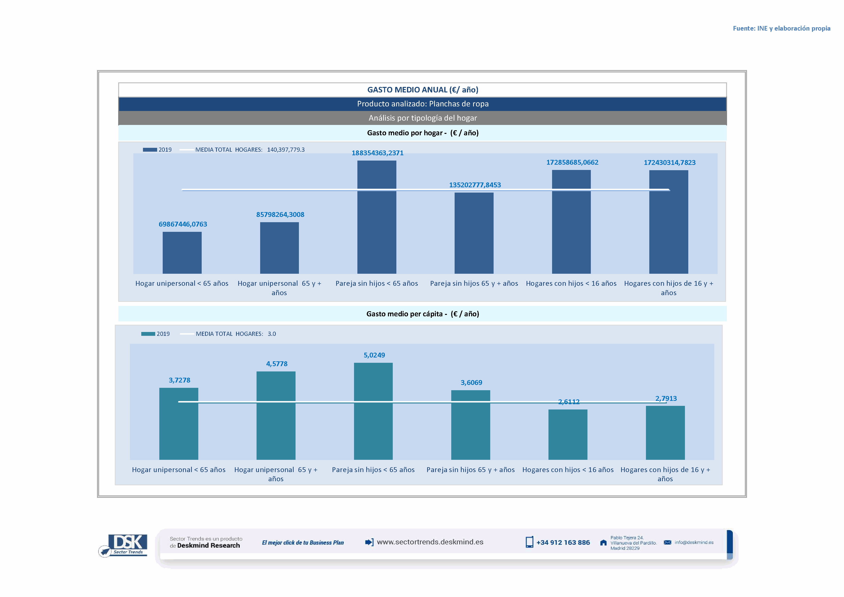 Infografía gasto medio por tipo hogar de Planchas de ropa