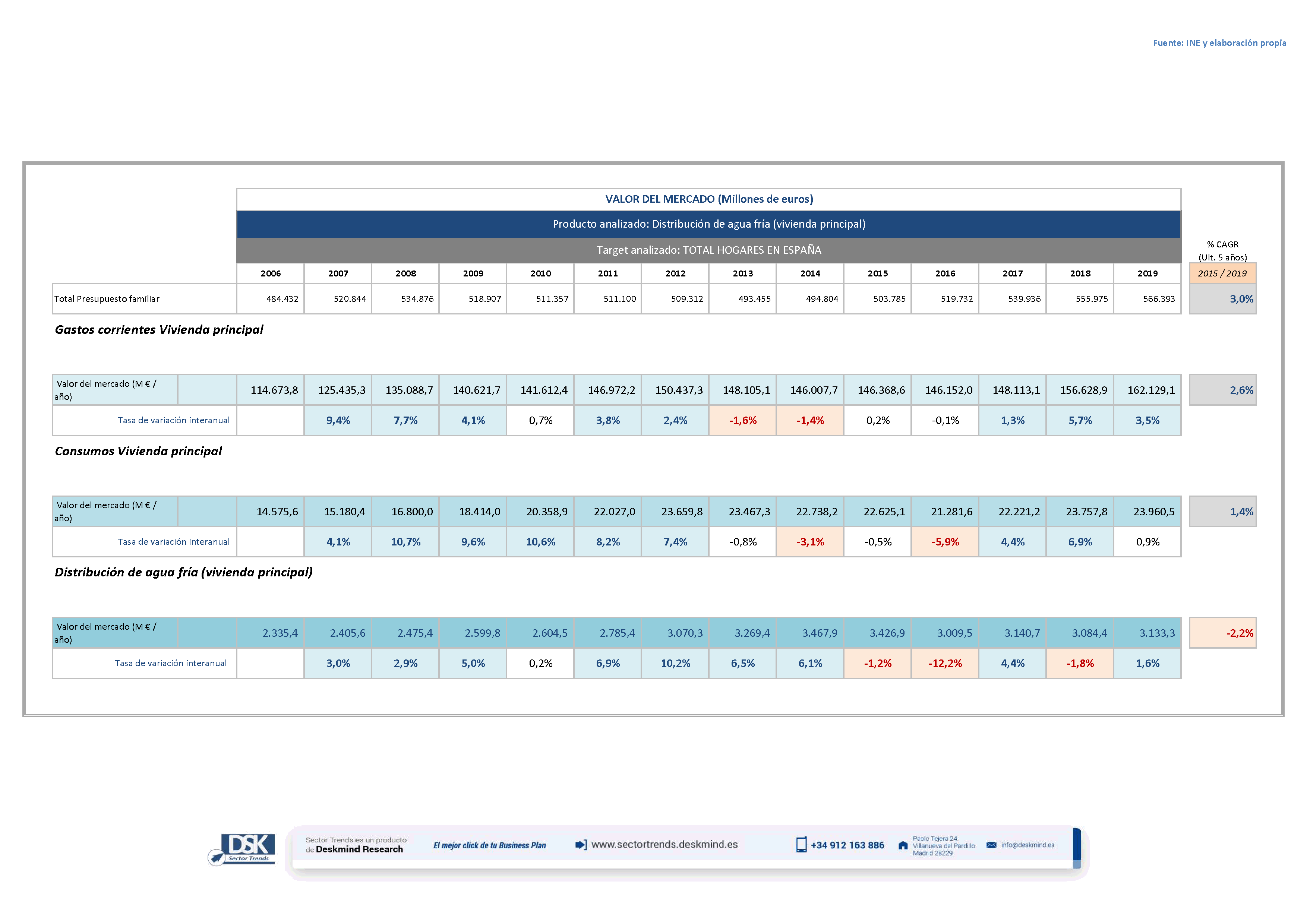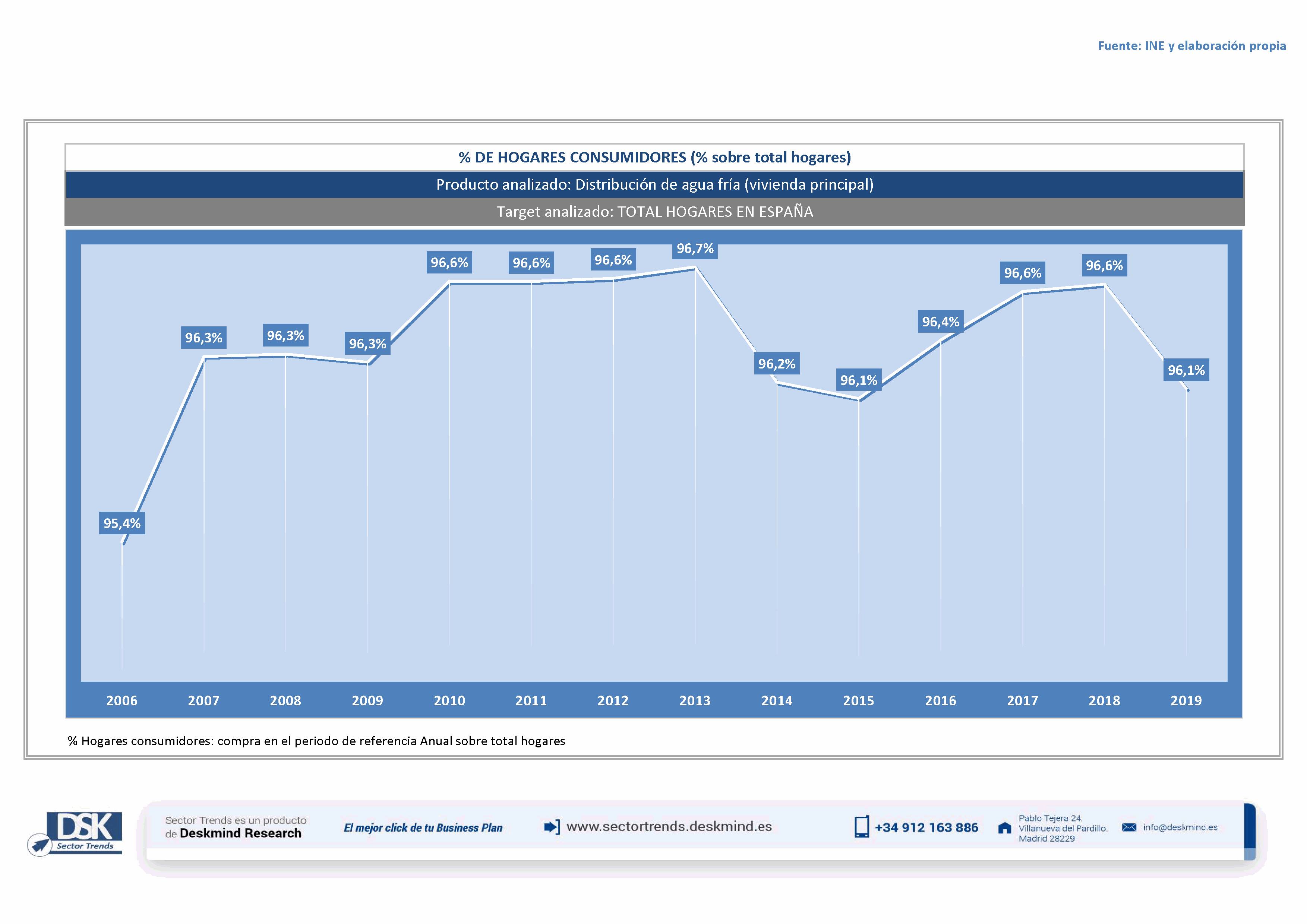 Gráfico evolutivo % de hogares consumidores de Distribución de agua fría (vivienda principal)