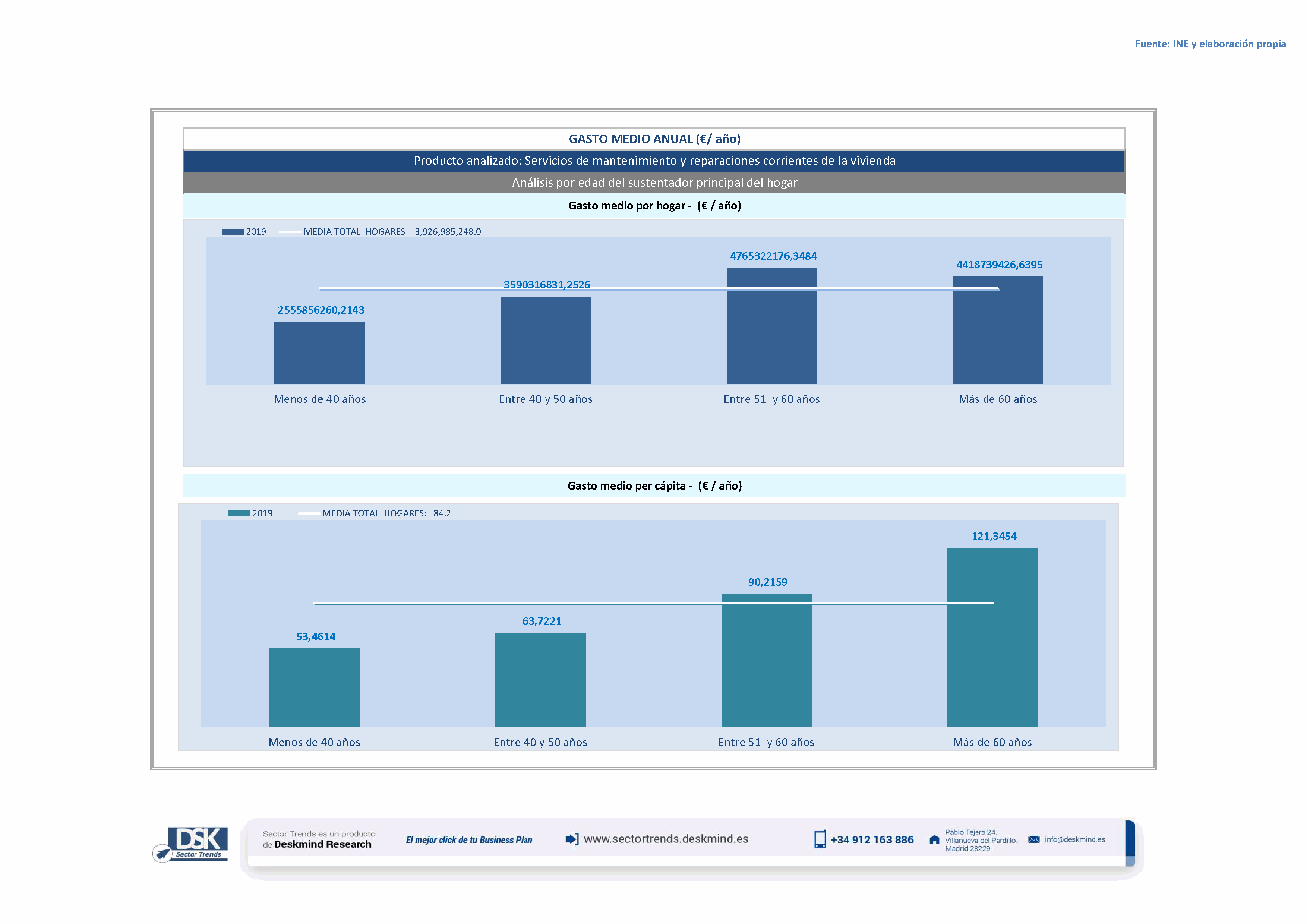 Infografía gasto medio por edad del sustentador principal de Análisis Total Sector Mantenimiento Vivienda principal