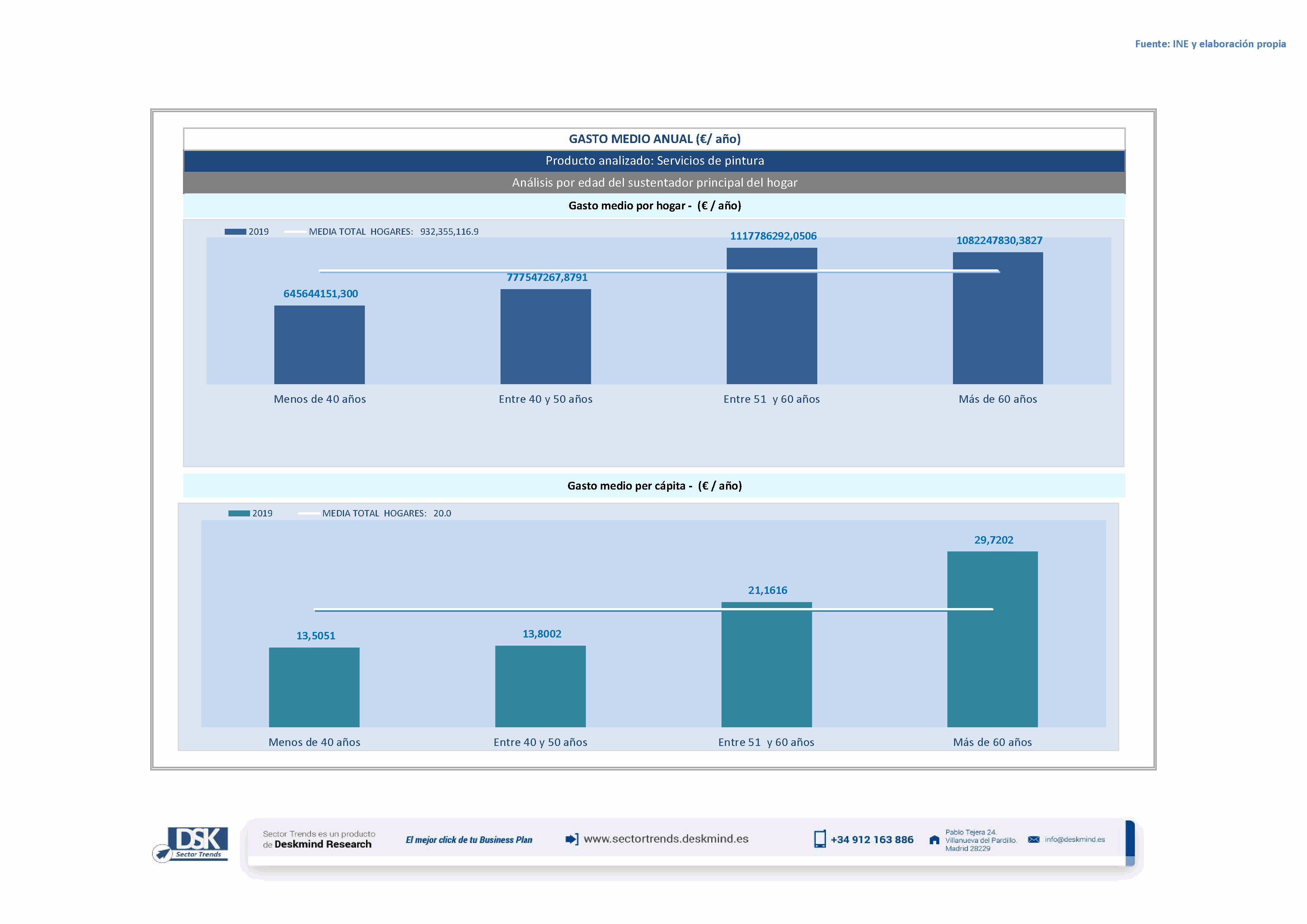 Infografía gasto medio por edad del sustentador principal de Servicios de pintura