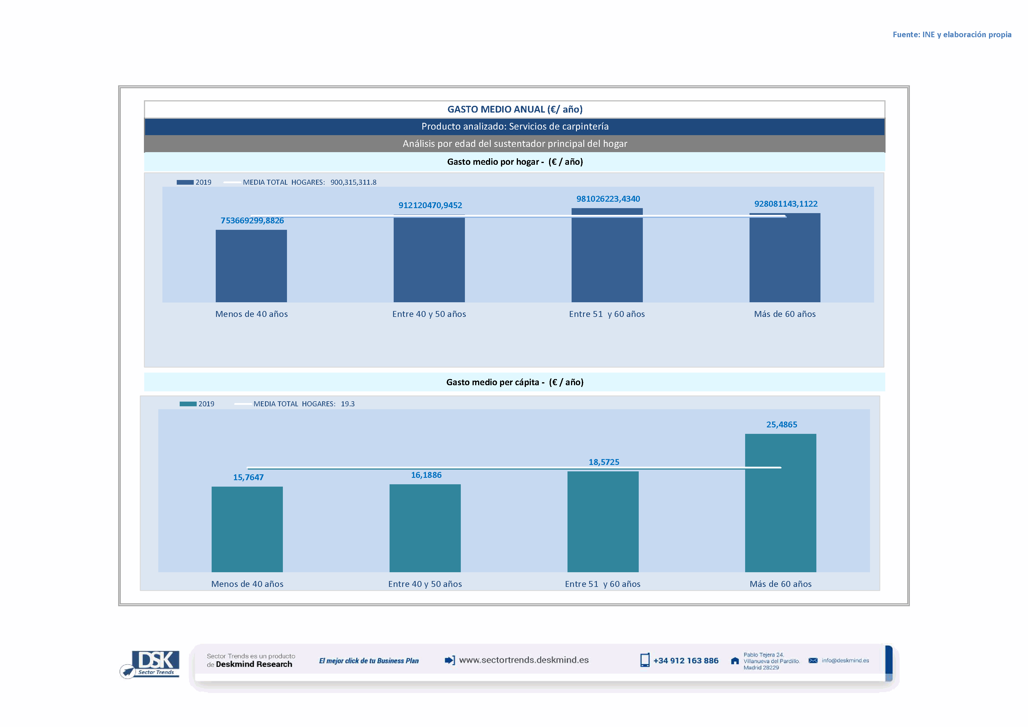 Infografía gasto medio por edad del sustentador principal de Servicios de carpintería
