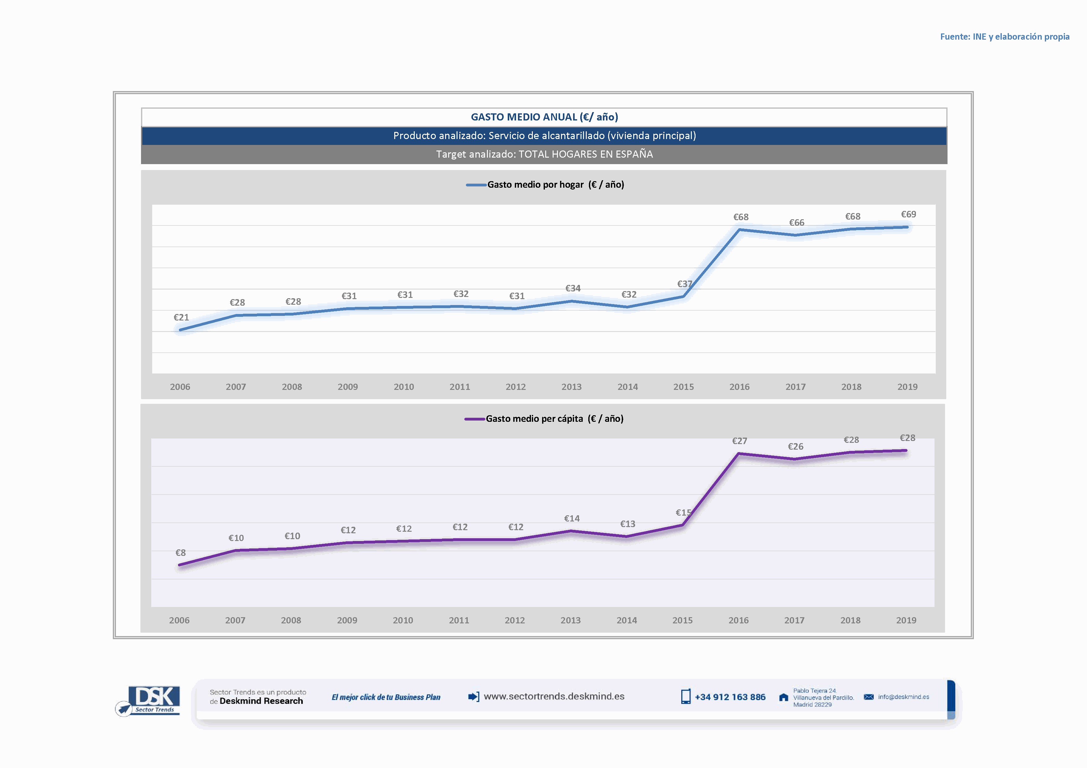 Gráfico evolutivo gasto medio anual de Servicio de alcantarillado (vivienda principal)