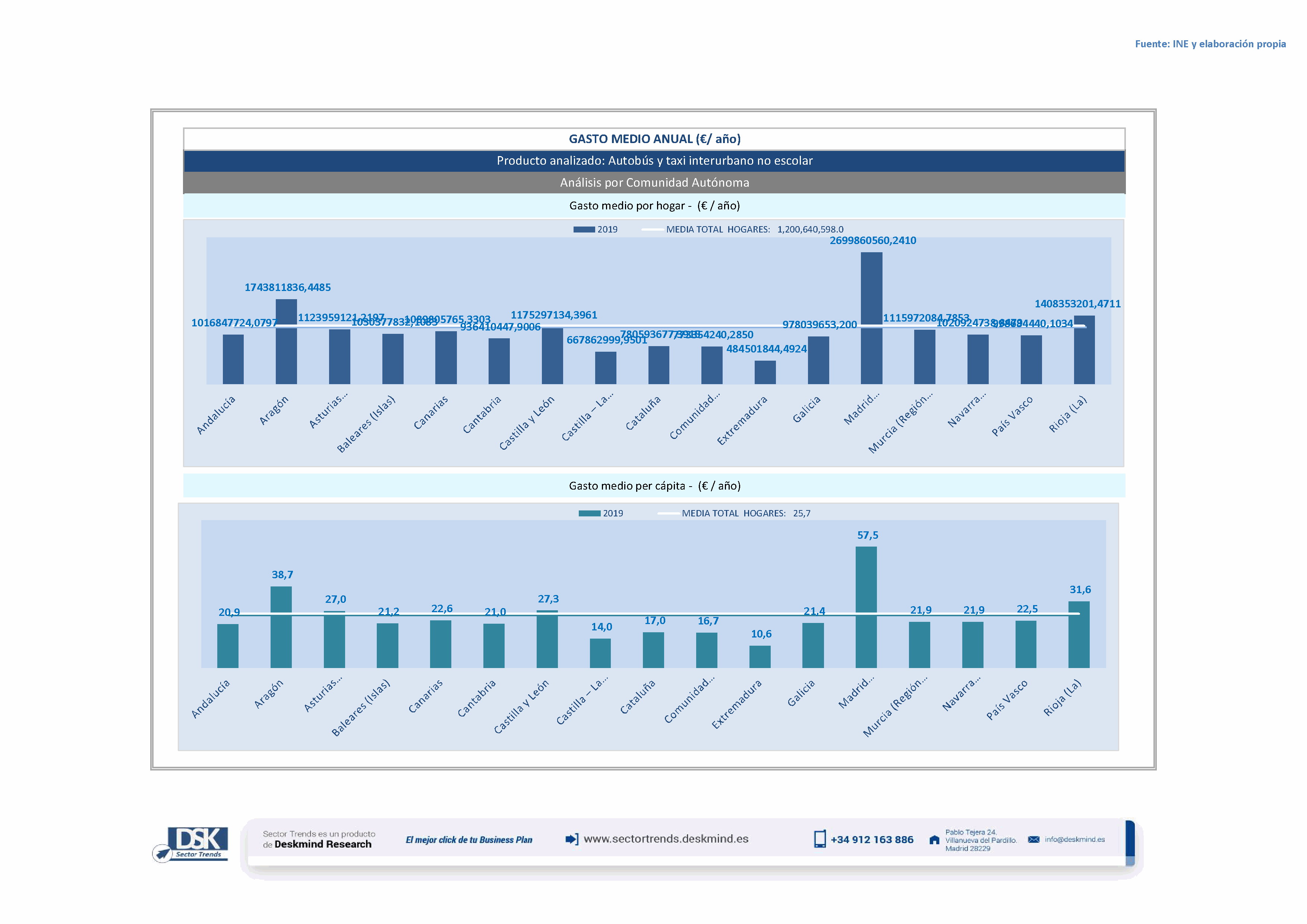 Infografía gasto medio por comunidad autónoma de Autobús y taxi interurbano no escolar