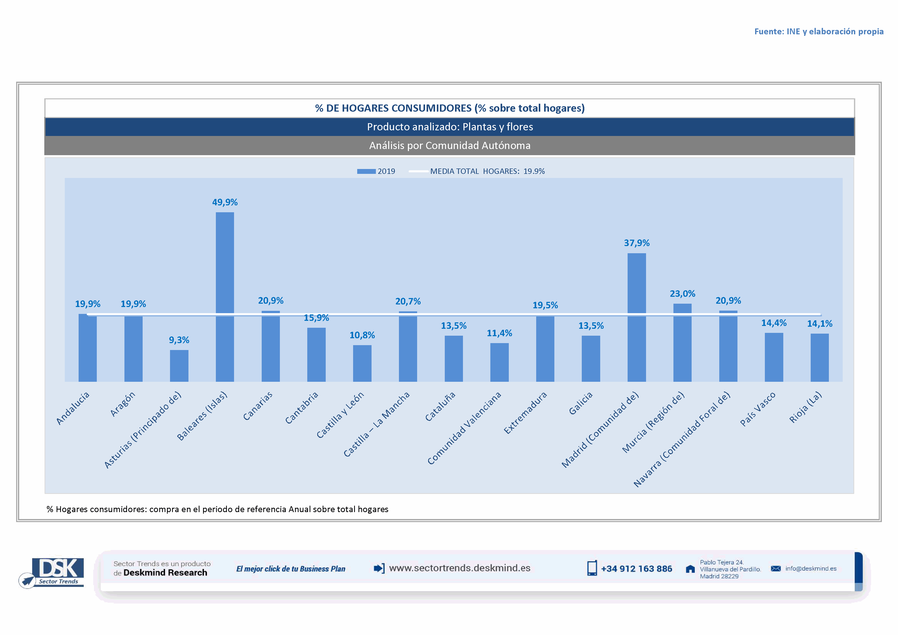 Infografía % hogares por comunidad autónoma de Análisis Total Sector Jardinería y flores
