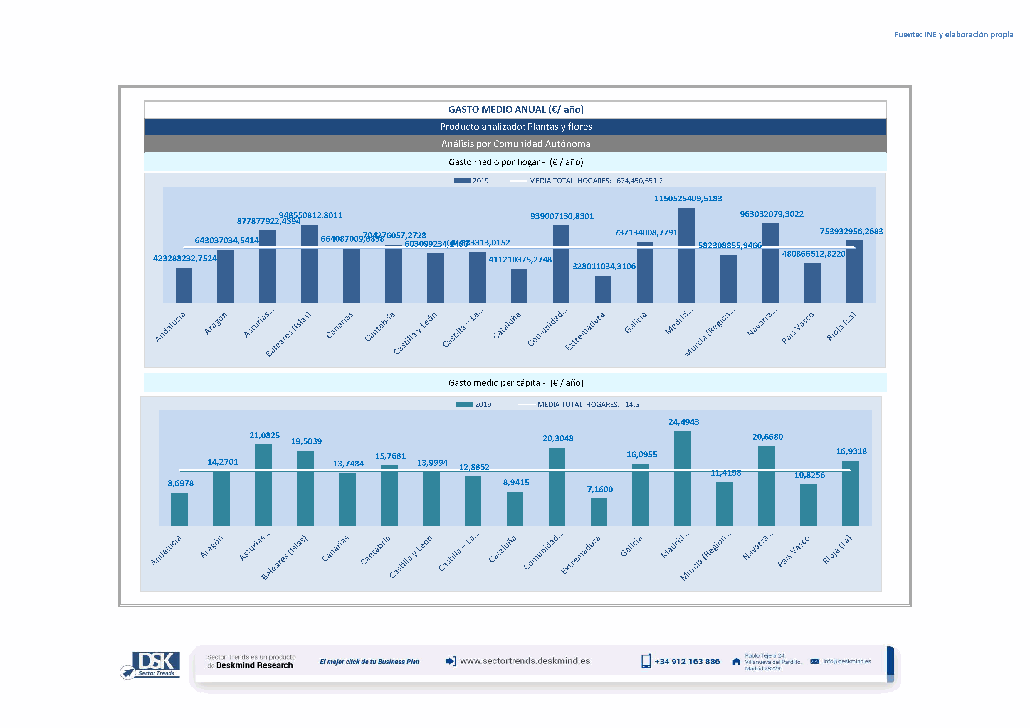 Infografía gasto medio por comunidad autónoma de Análisis Total Sector Jardinería y flores