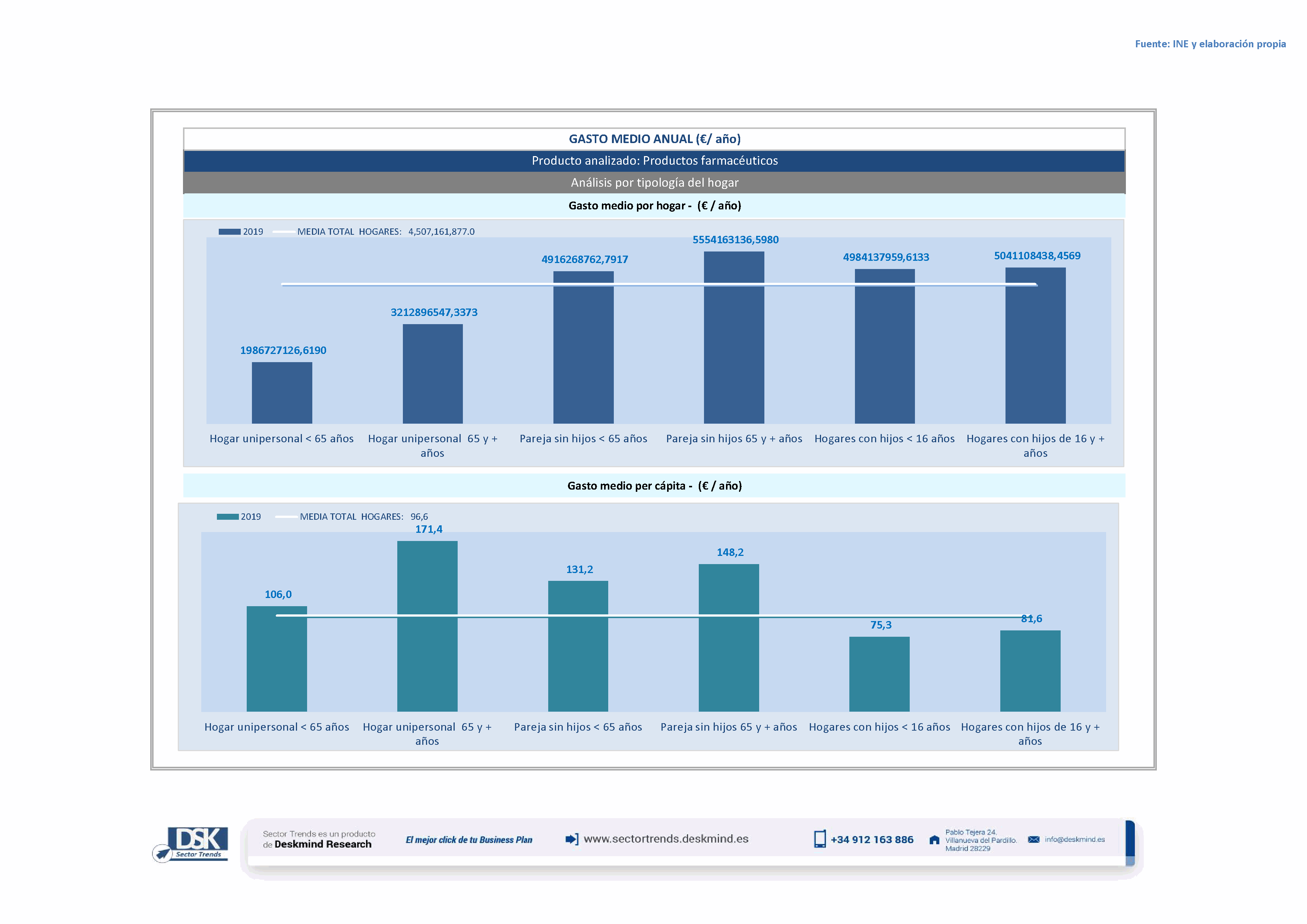 Infografía gasto medio por tipo hogar de Productos farmacéuticos
