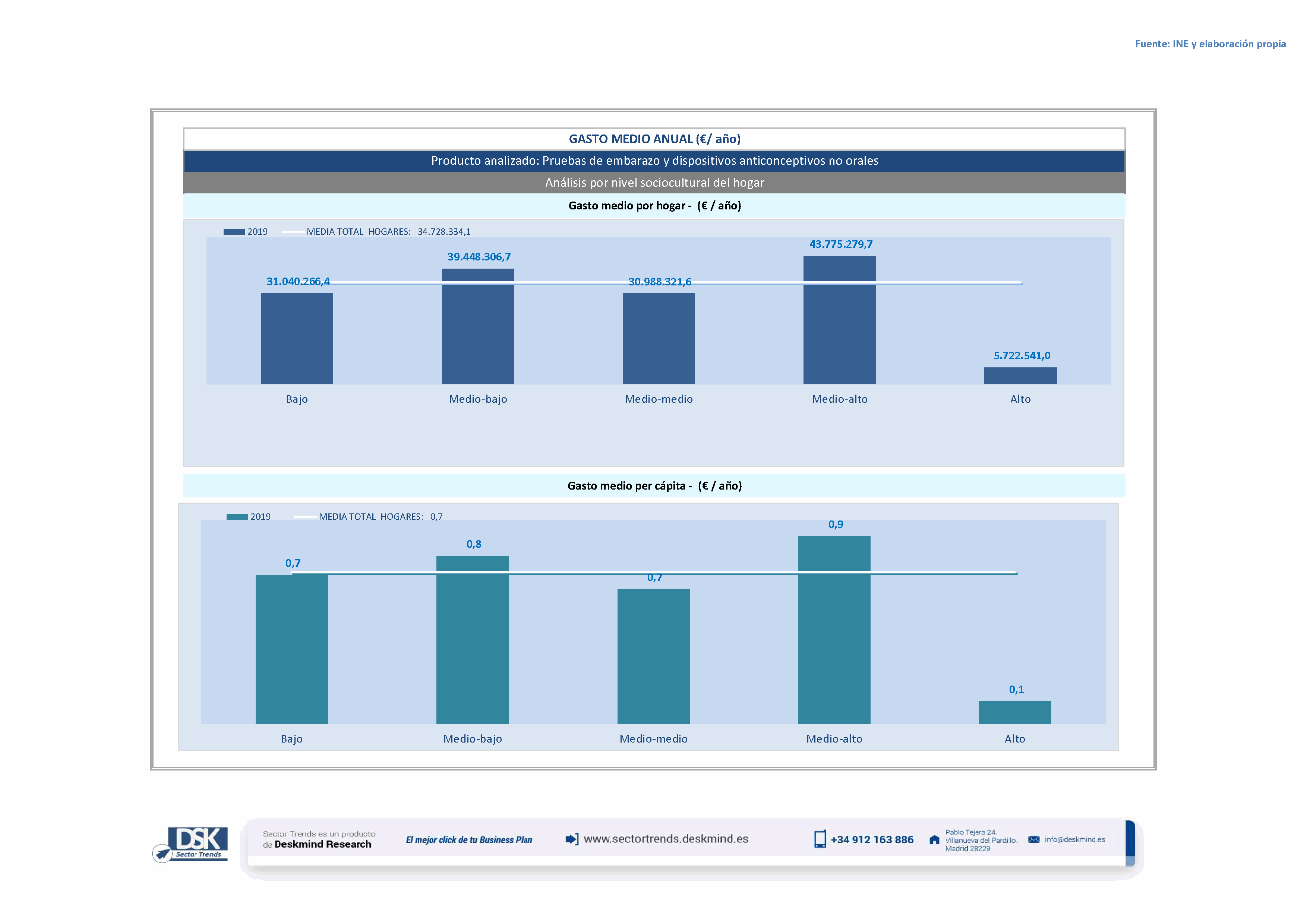 Infografía gasto medio por nivel social de Pruebas de embarazo y dispositivos anticonceptivos no orales