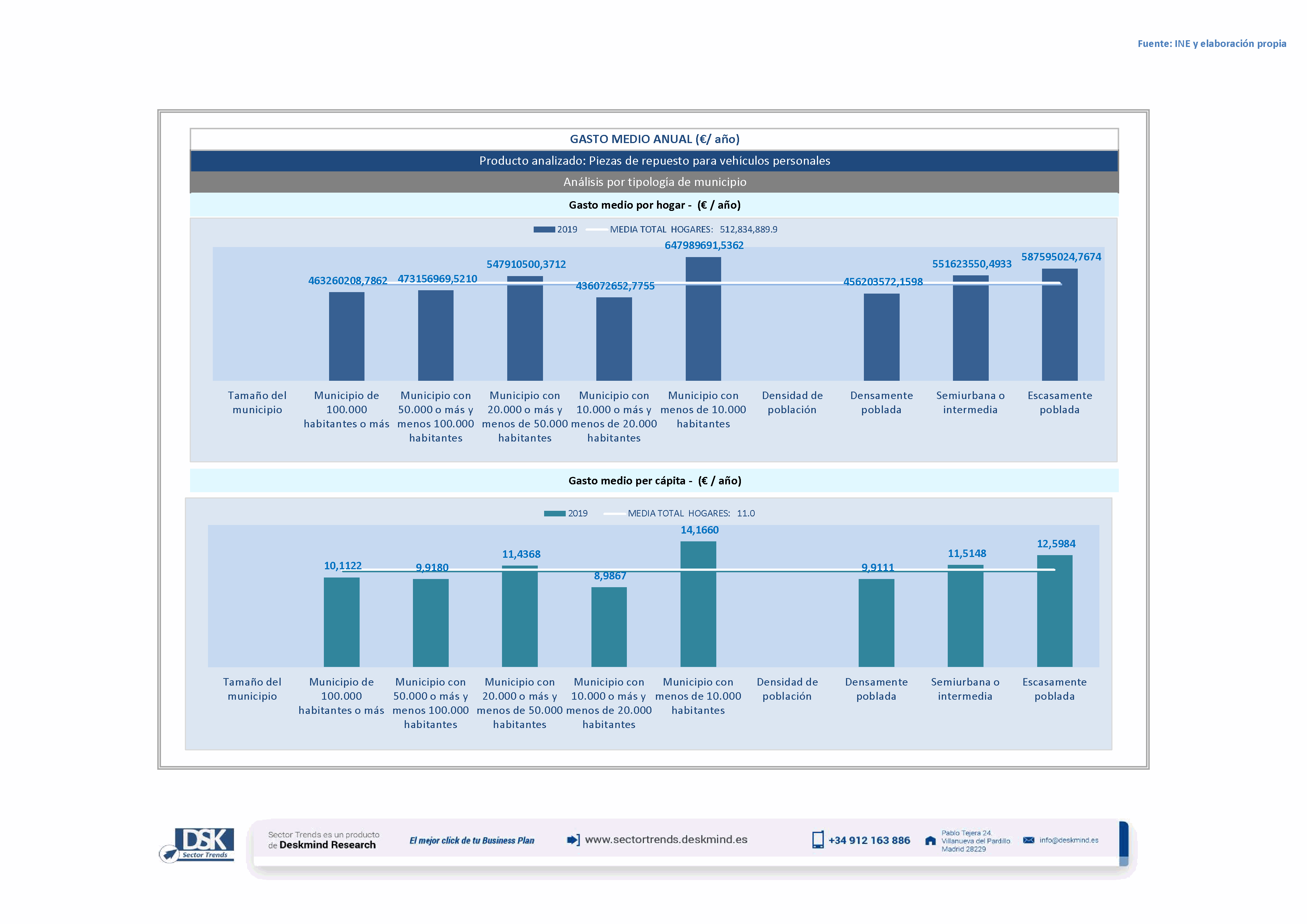 Infografía gasto medio por tamaño de hábitat de Piezas de repuesto para vehículos personales