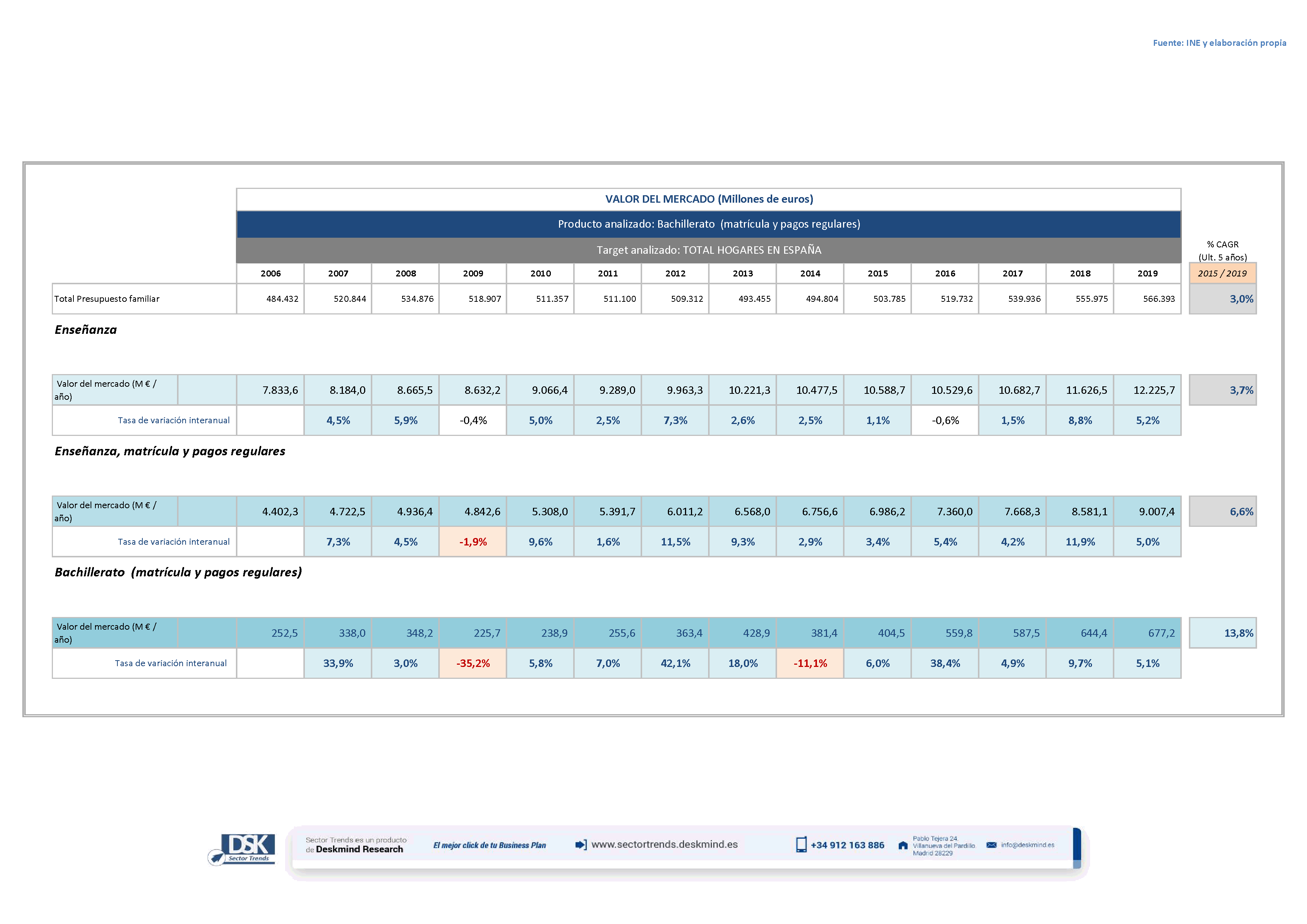 Cuadro estadístico valor del mercado de Bachillerato (matrícula y pagos regulares)