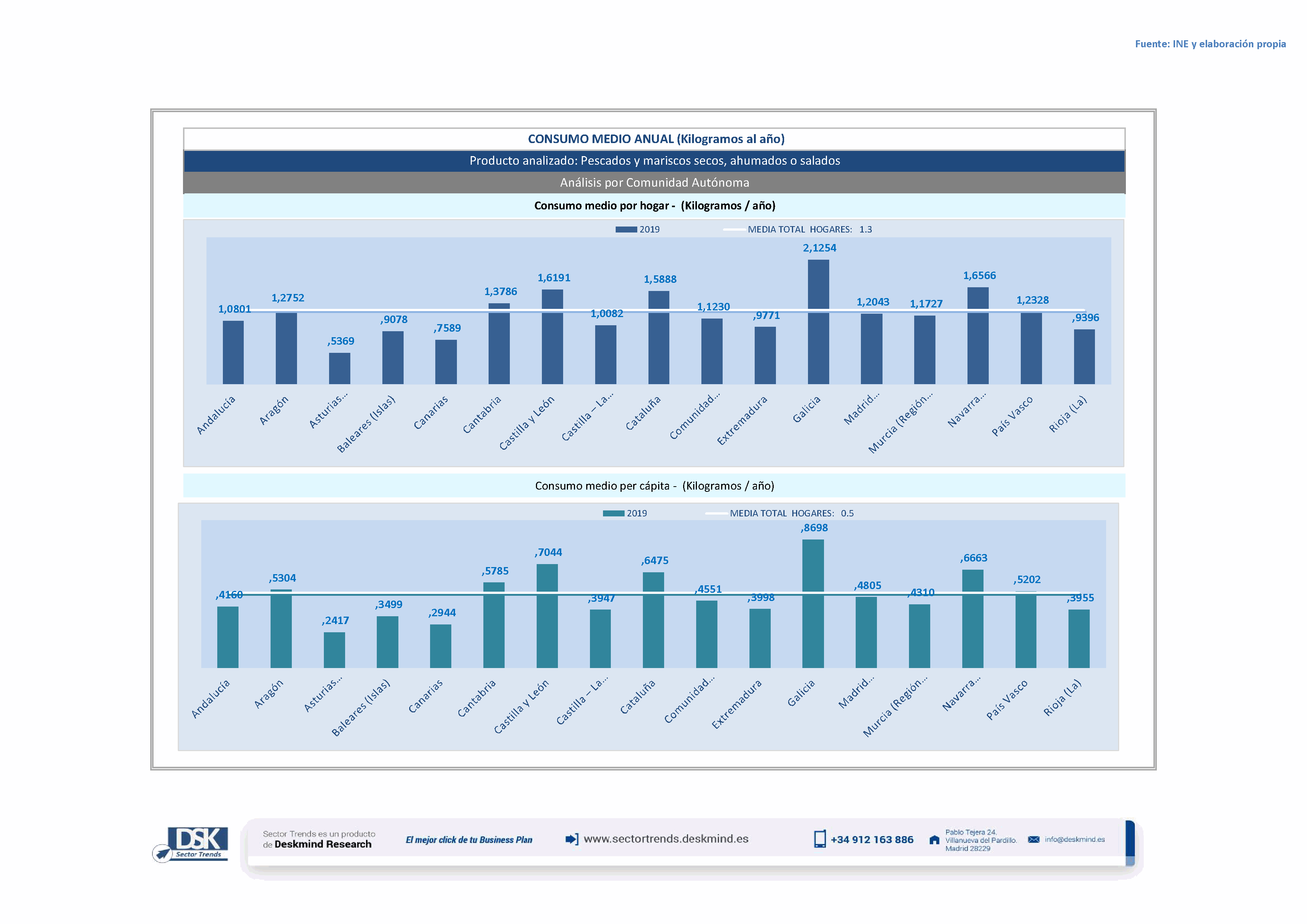 Infografía consumo medio por comunidad autónoma de Pescados y mariscos procesados o conservados