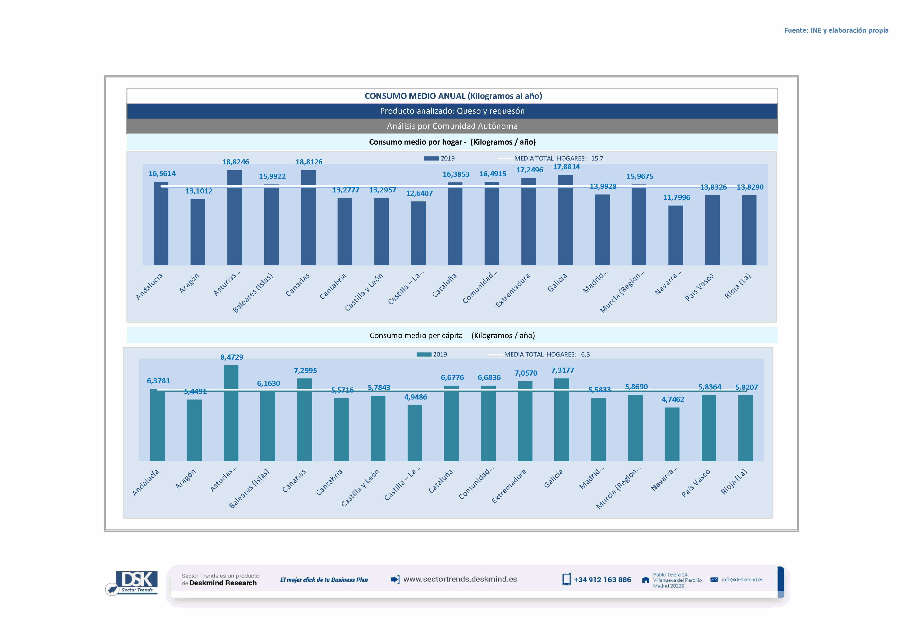 Infografía consumo medio por comunidad autónoma de Queso y requesón
