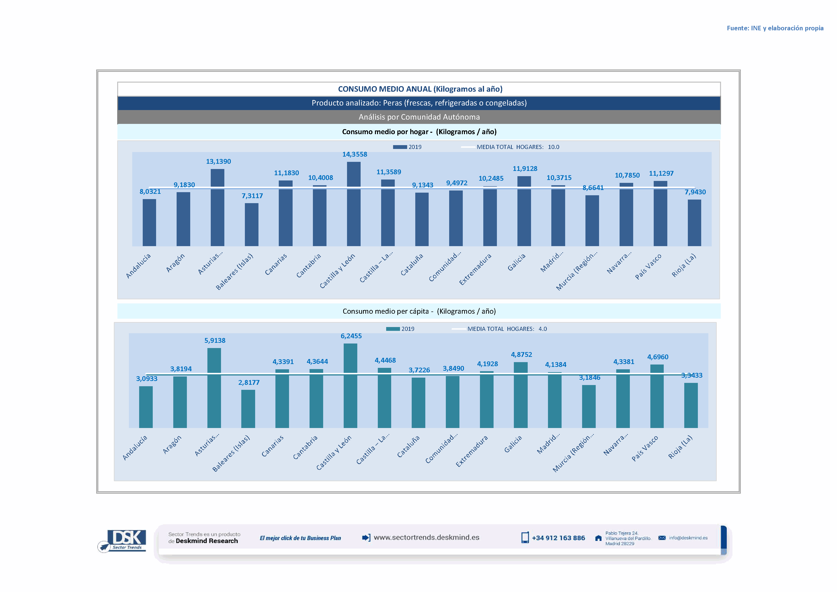 Infografía consumo medio por comunidad autónoma de Peras (frescas, refrigeradas o congeladas)