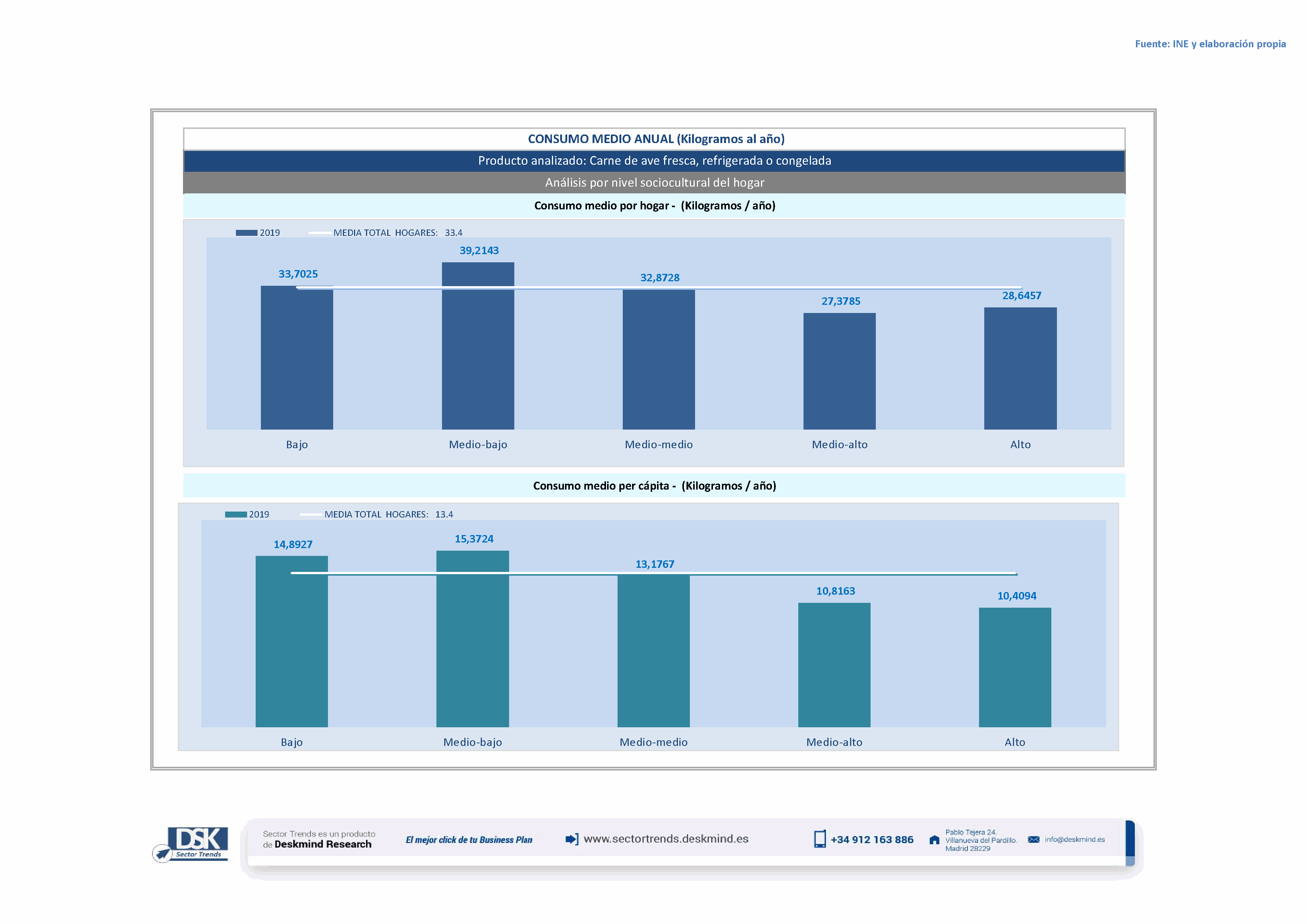 Infografía consumo medio por nivel social de Carne de ave fresca, refrigerada o congelada