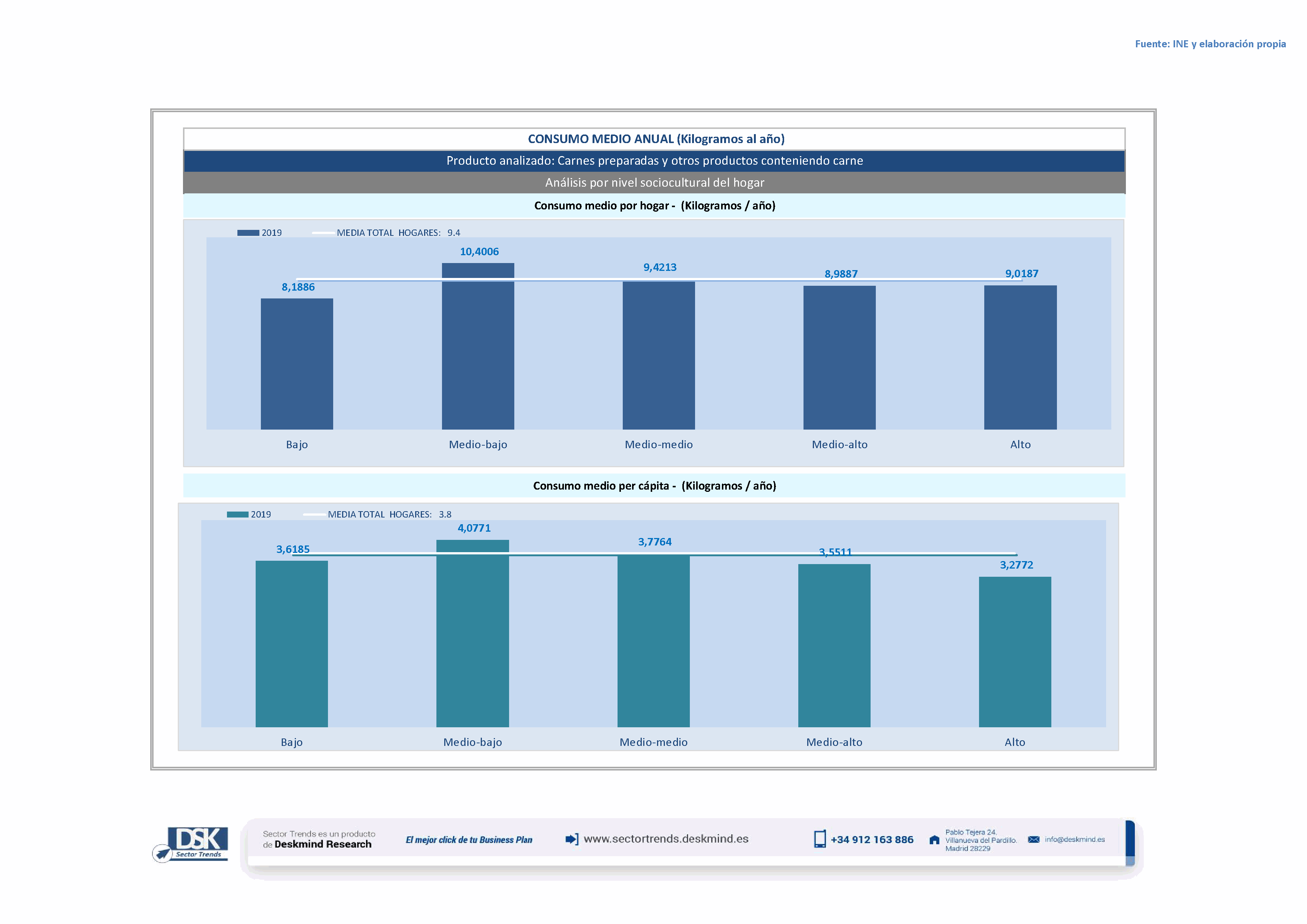 Infografía consumo medio por nivel social de Carnes preparadas y otros productos conteniendo carne