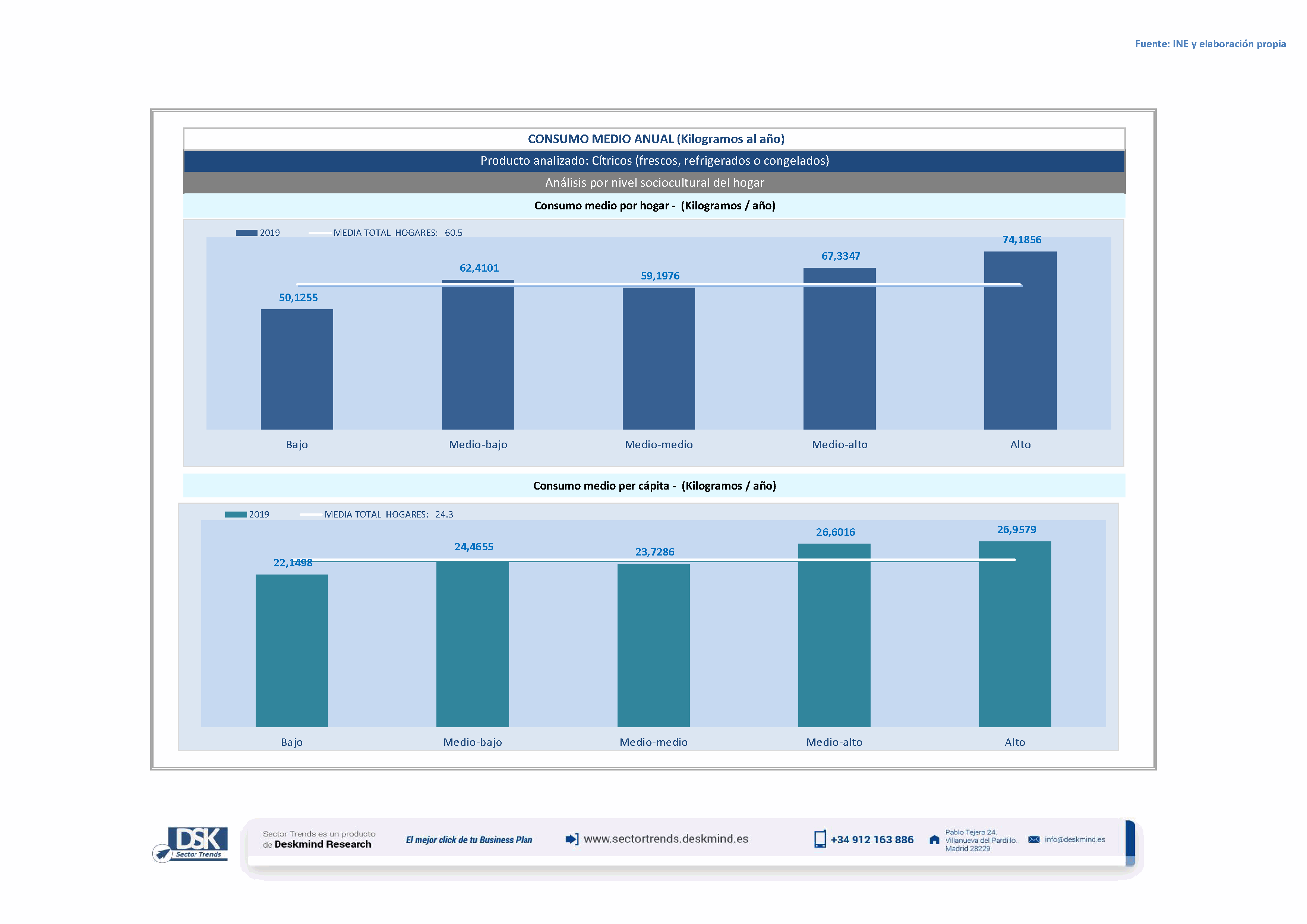 Infografía consumo medio por nivel social de Cítricos (frescos, refrigerados o congelados)