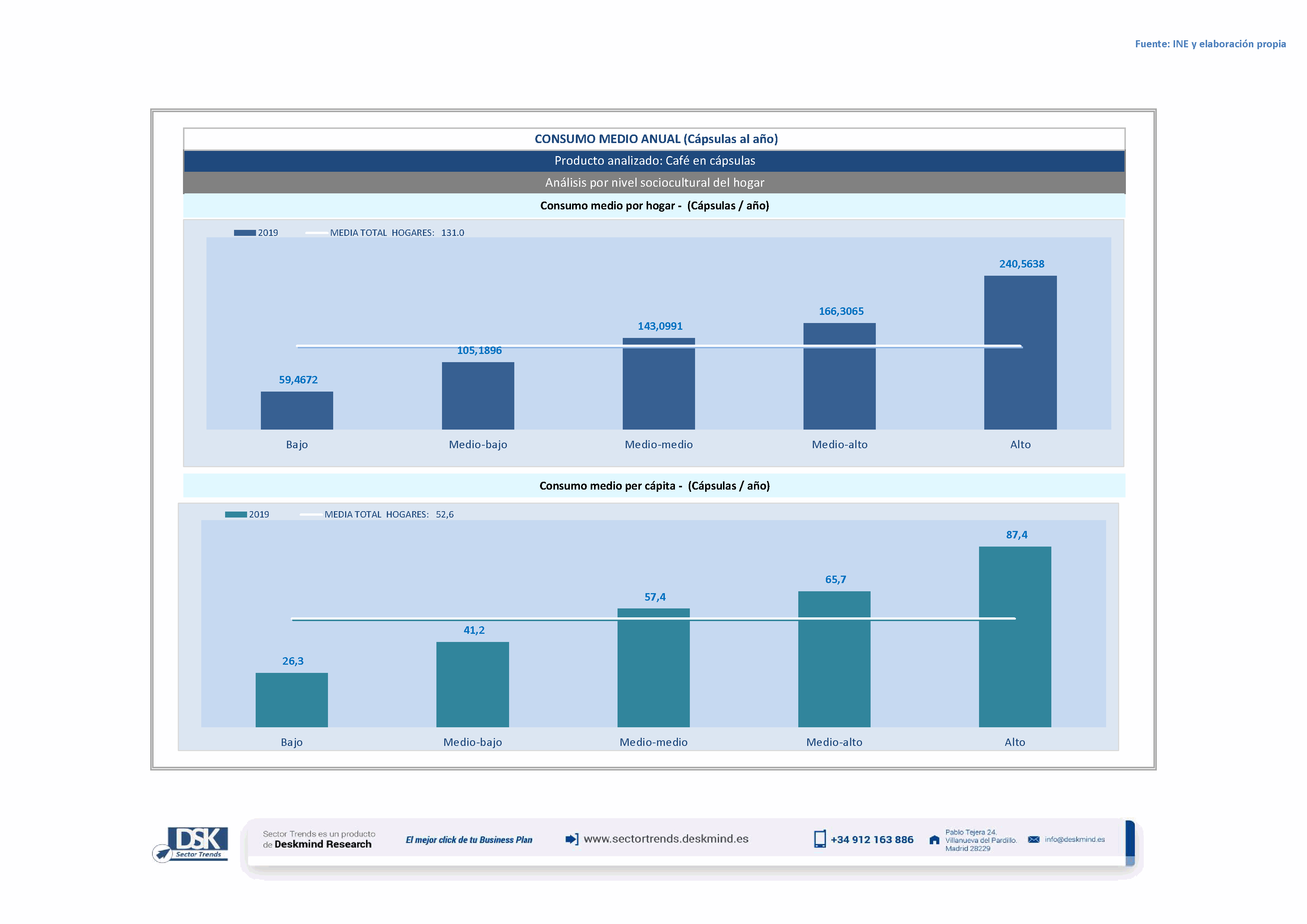 Infografía consumo medio por nivel social de Café en cápsulas