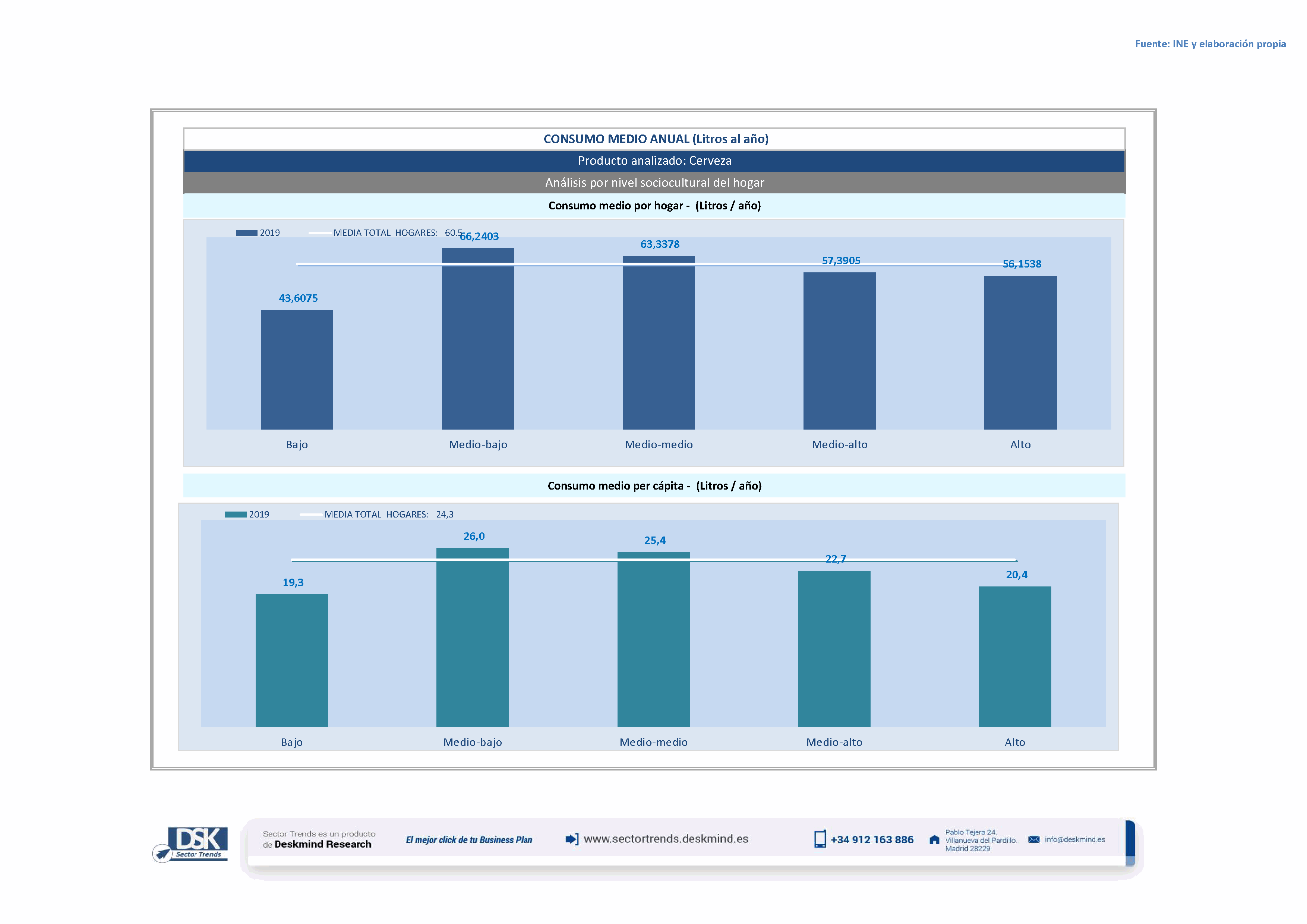 Infografía consumo medio por nivel social de Cerveza de baja fermentación