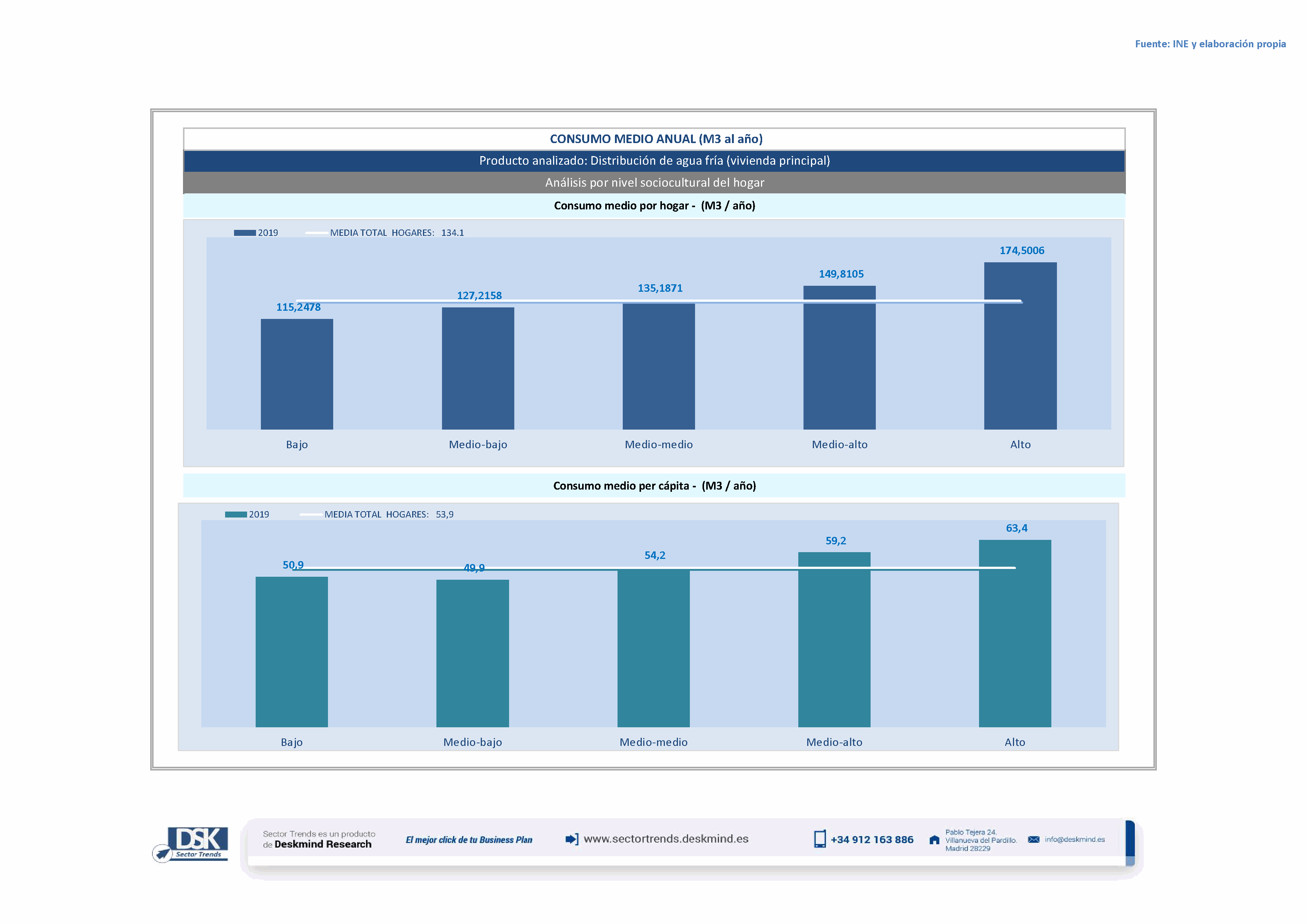 Infografía consumo medio por nivel social de Distribución de agua fría (vivienda principal)