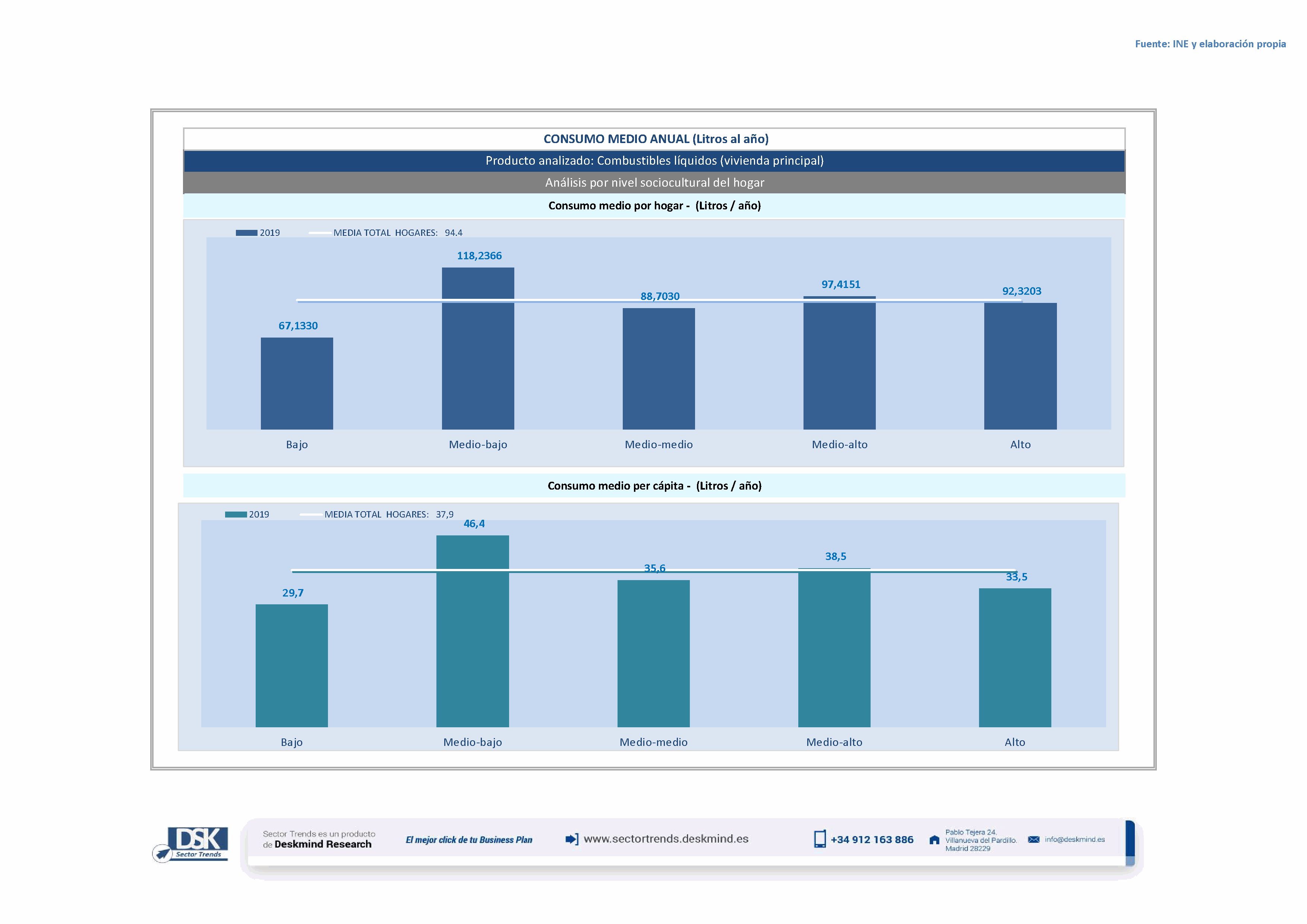 Infografía consumo medio por nivel social de Combustibles líquidos (vivienda principal)