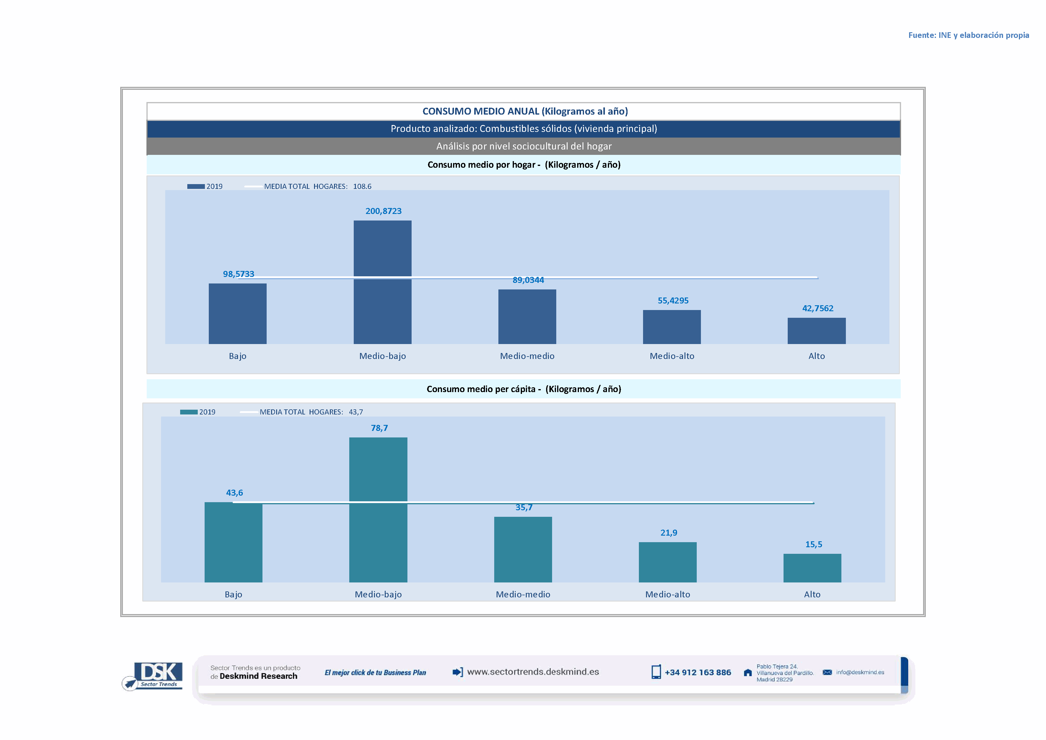 Infografía consumo medio por nivel social de Combustibles sólidos (vivienda principal)