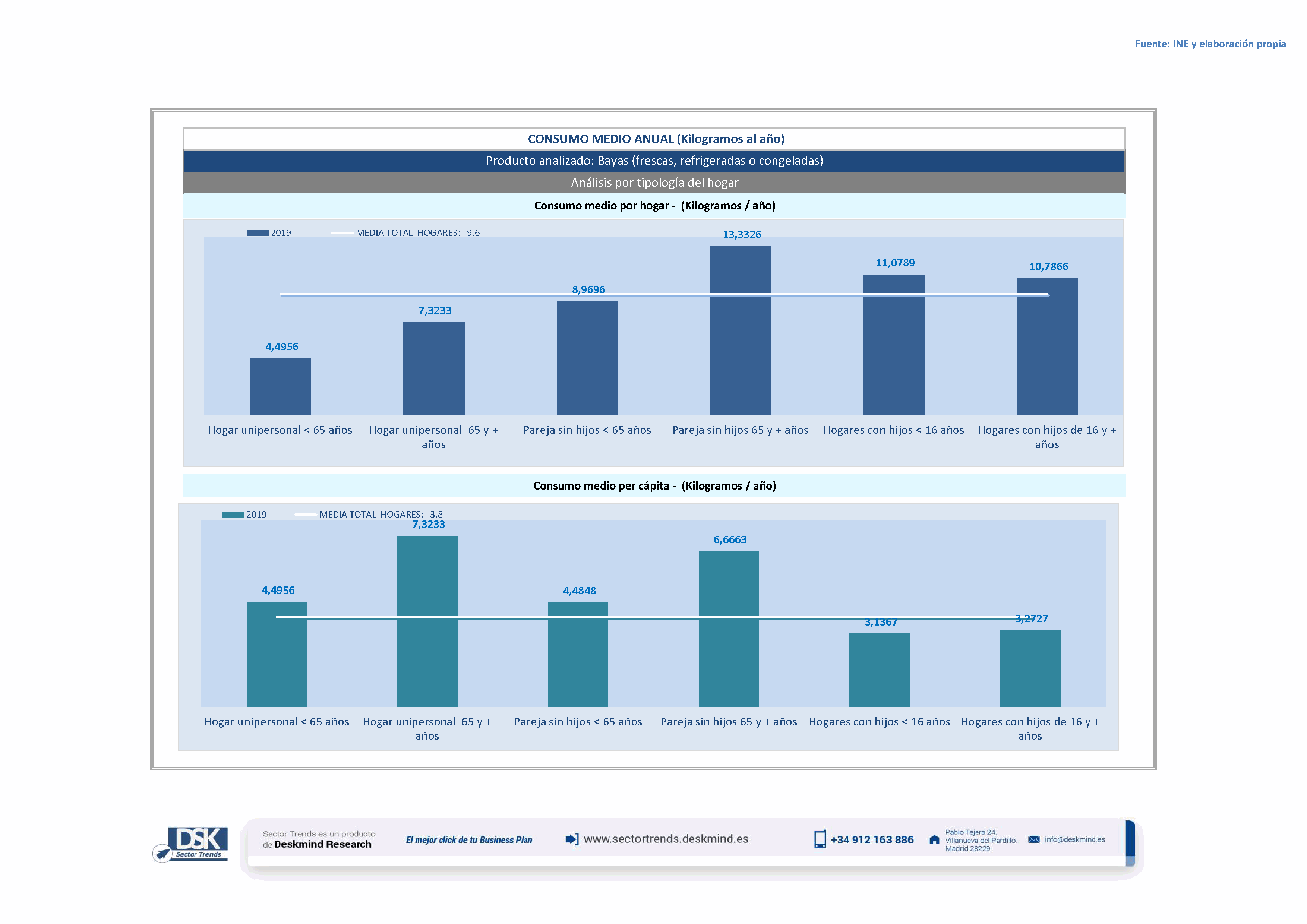 Infografía consumo medio por tipo hogar de Bayas (frescas, refrigeradas o congeladas)