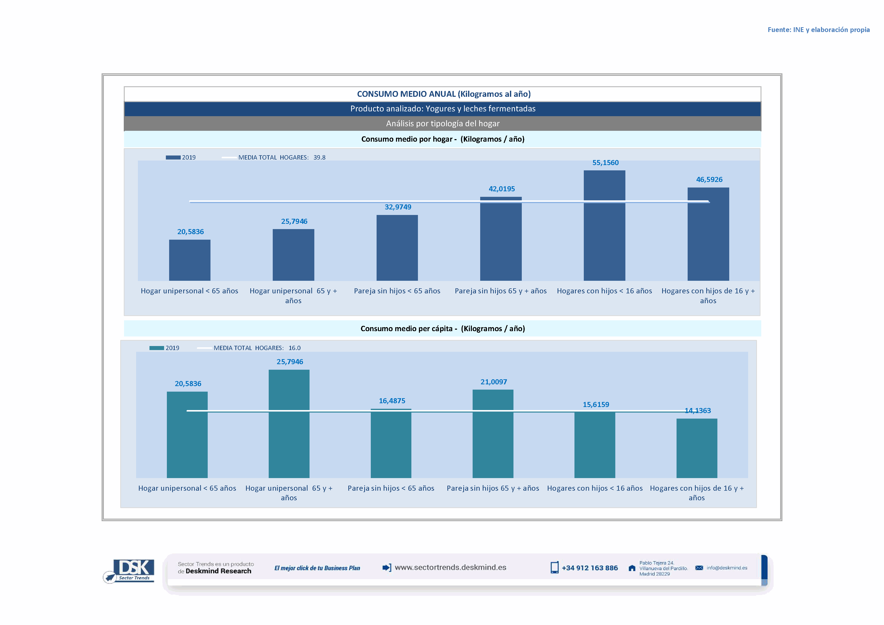 Infografía consumo medio por tipo hogar de Yogures y leches fermentadas