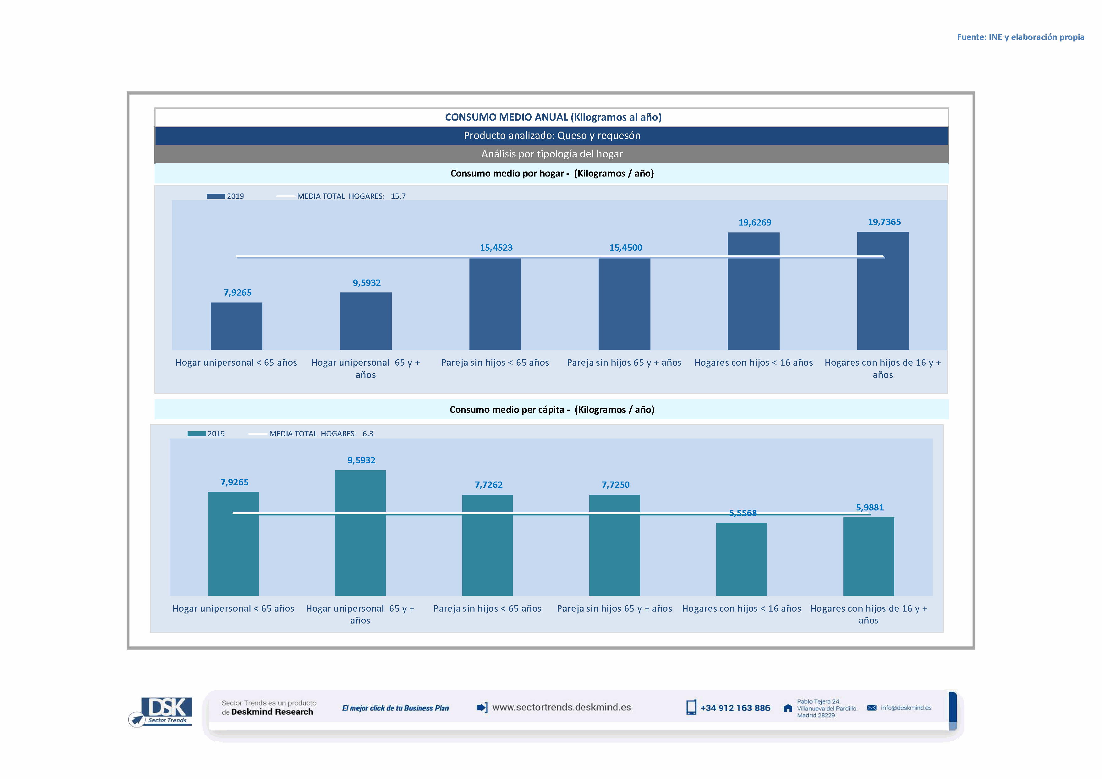 Infografía consumo medio por tipo hogar de Queso y requesón