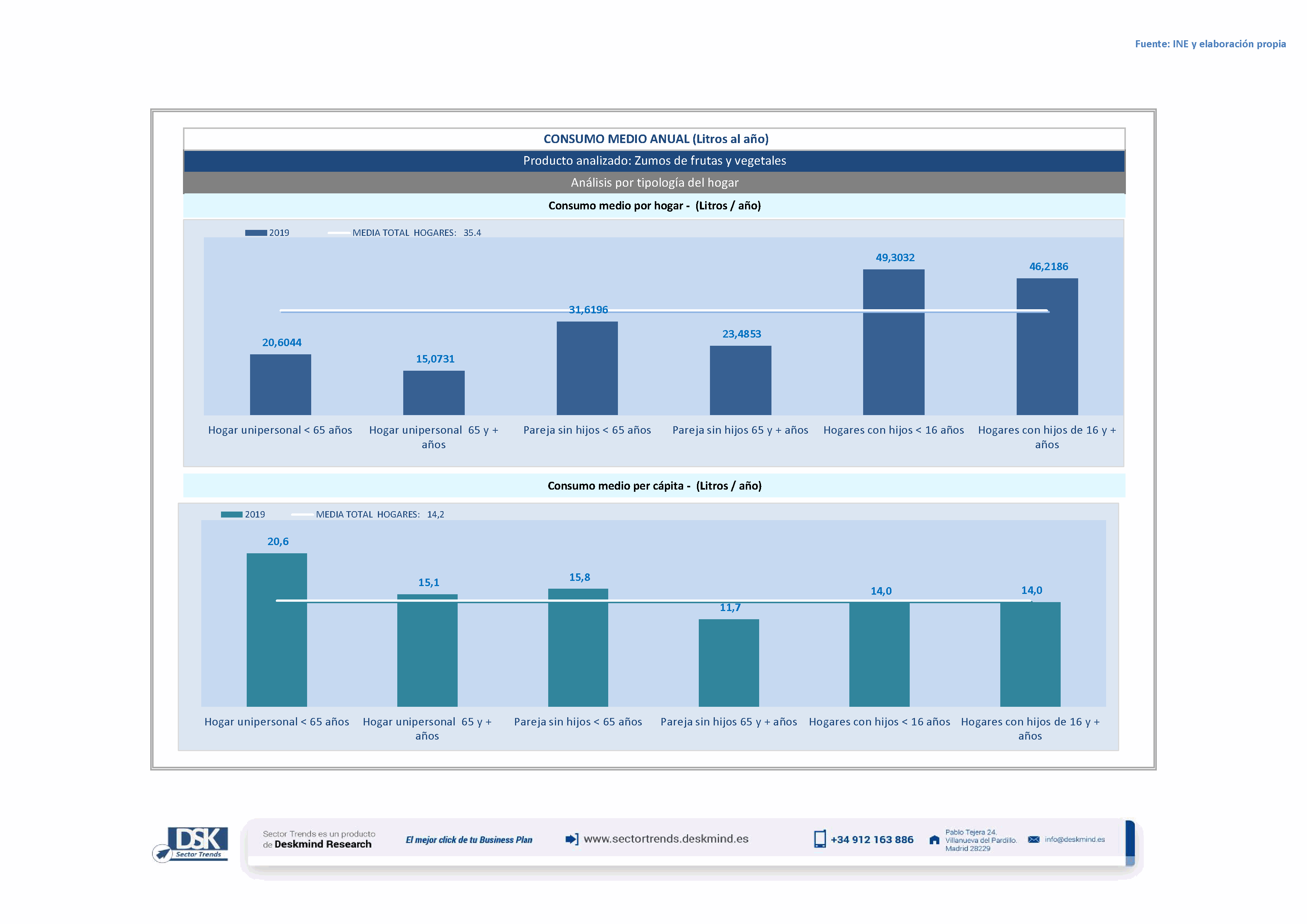 Infografía consumo medio por tipo hogar de Zumos de frutas y vegetales