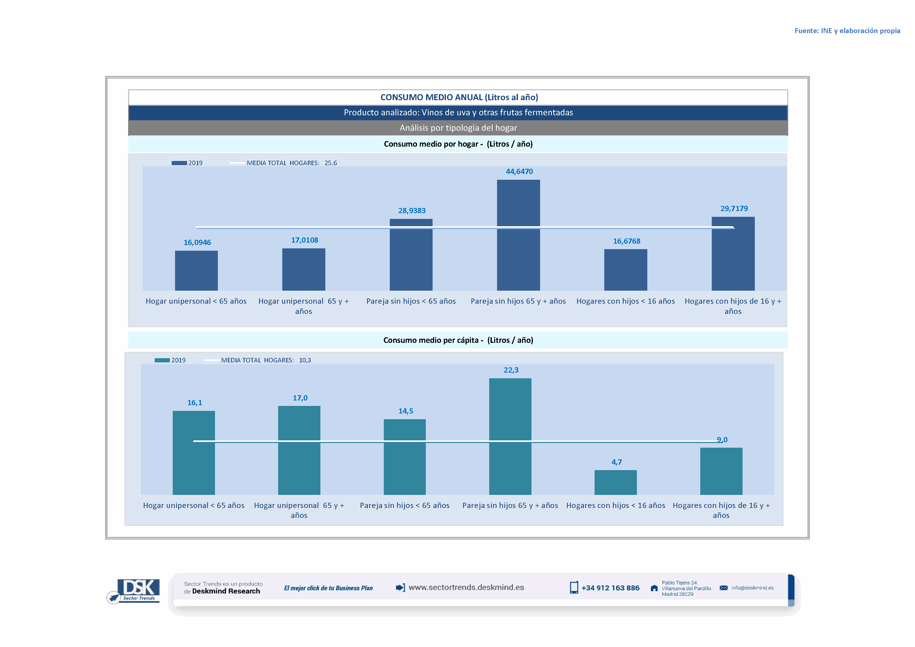 Infografía consumo medio por tipo hogar de Vinos de uva y otras frutas fermentadas