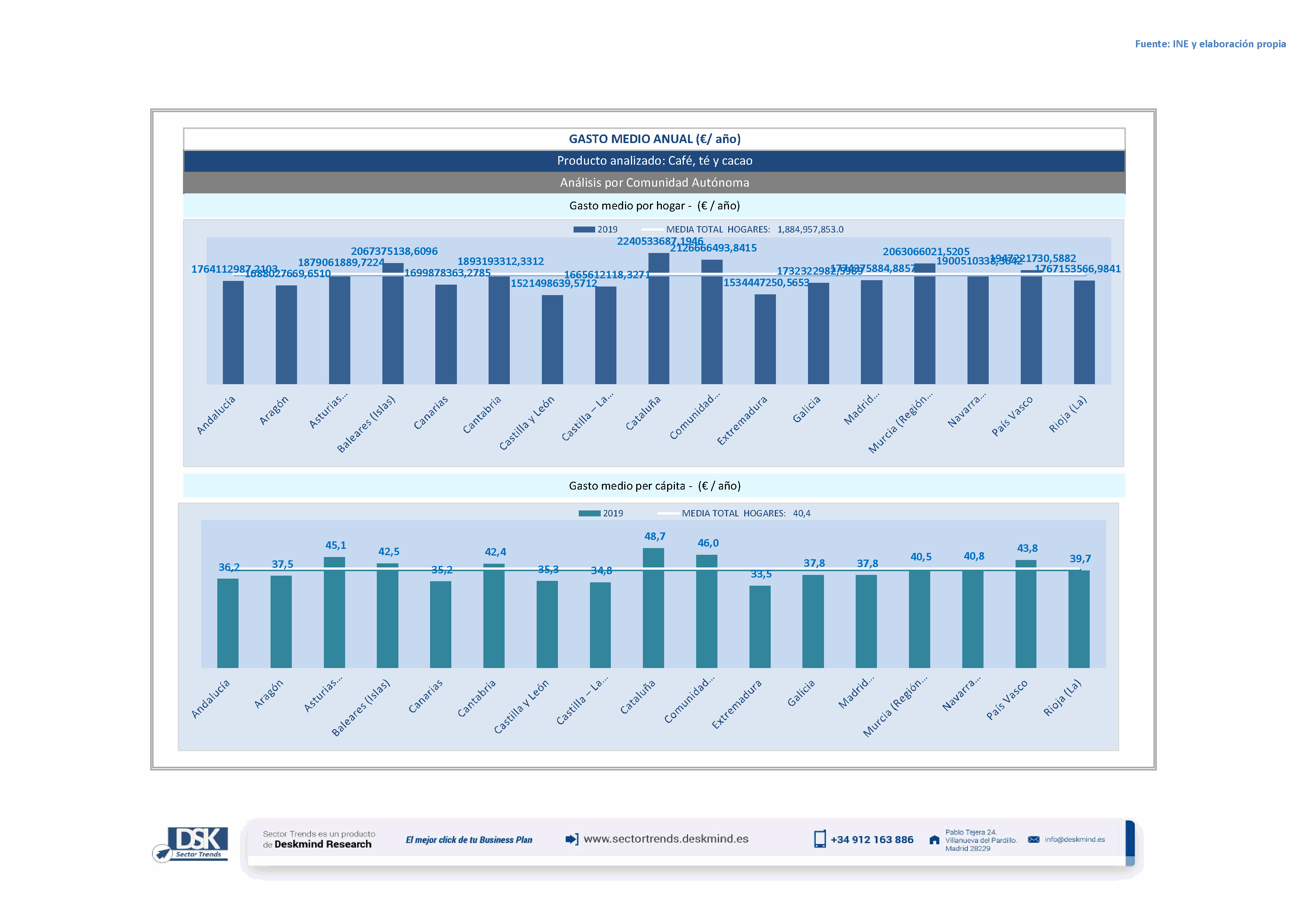 Infografía gasto medio por comunidad autónoma de Análisis Total Sector Café, té y cacao