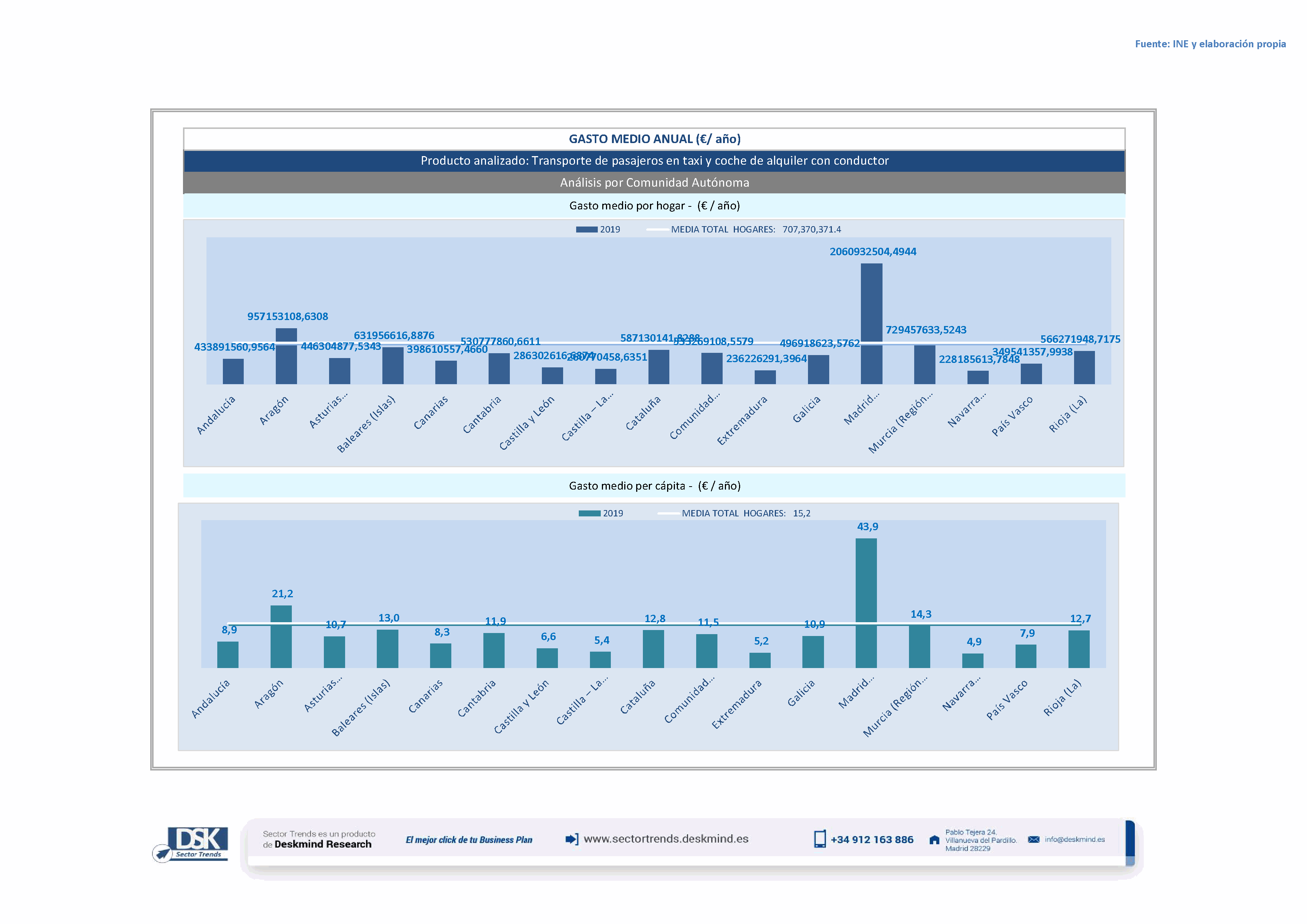 Infografía gasto medio por comunidad autónoma de Transporte de pasajeros en taxi y coche de alquiler con conductor