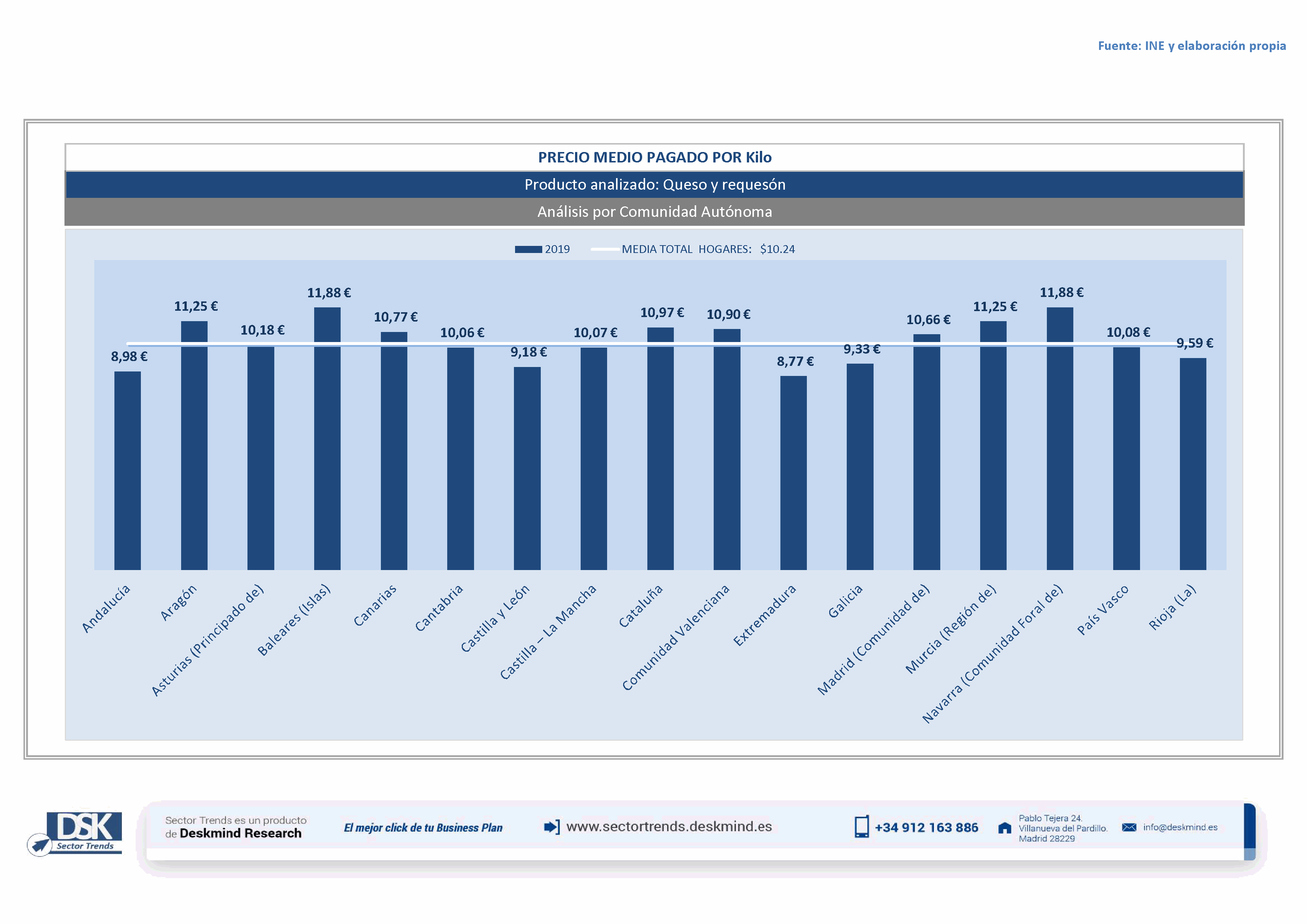 Infografía precio medio por comunidad autónoma de Queso y requesón