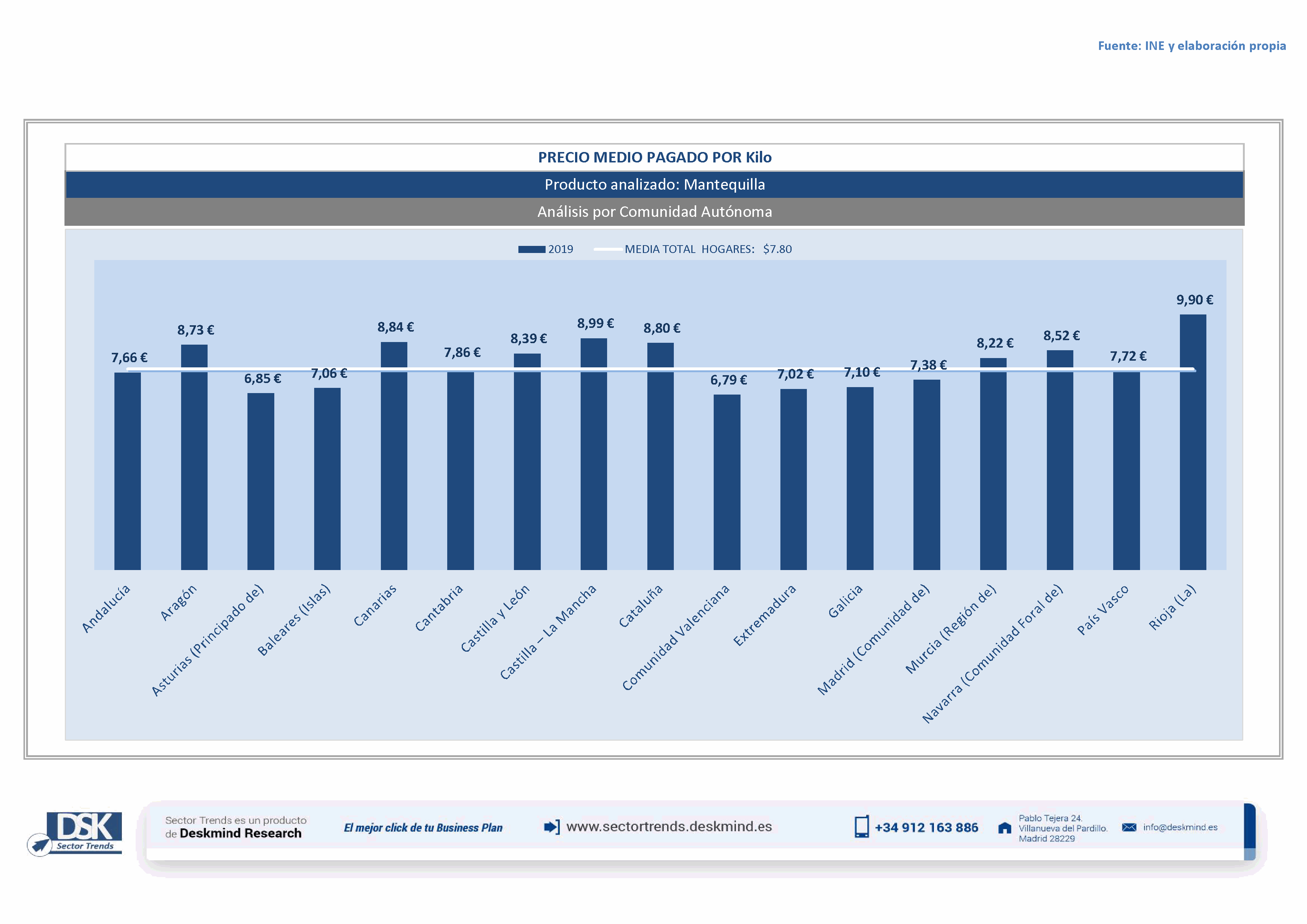 Infografía precio medio por comunidad autónoma de Mantequilla