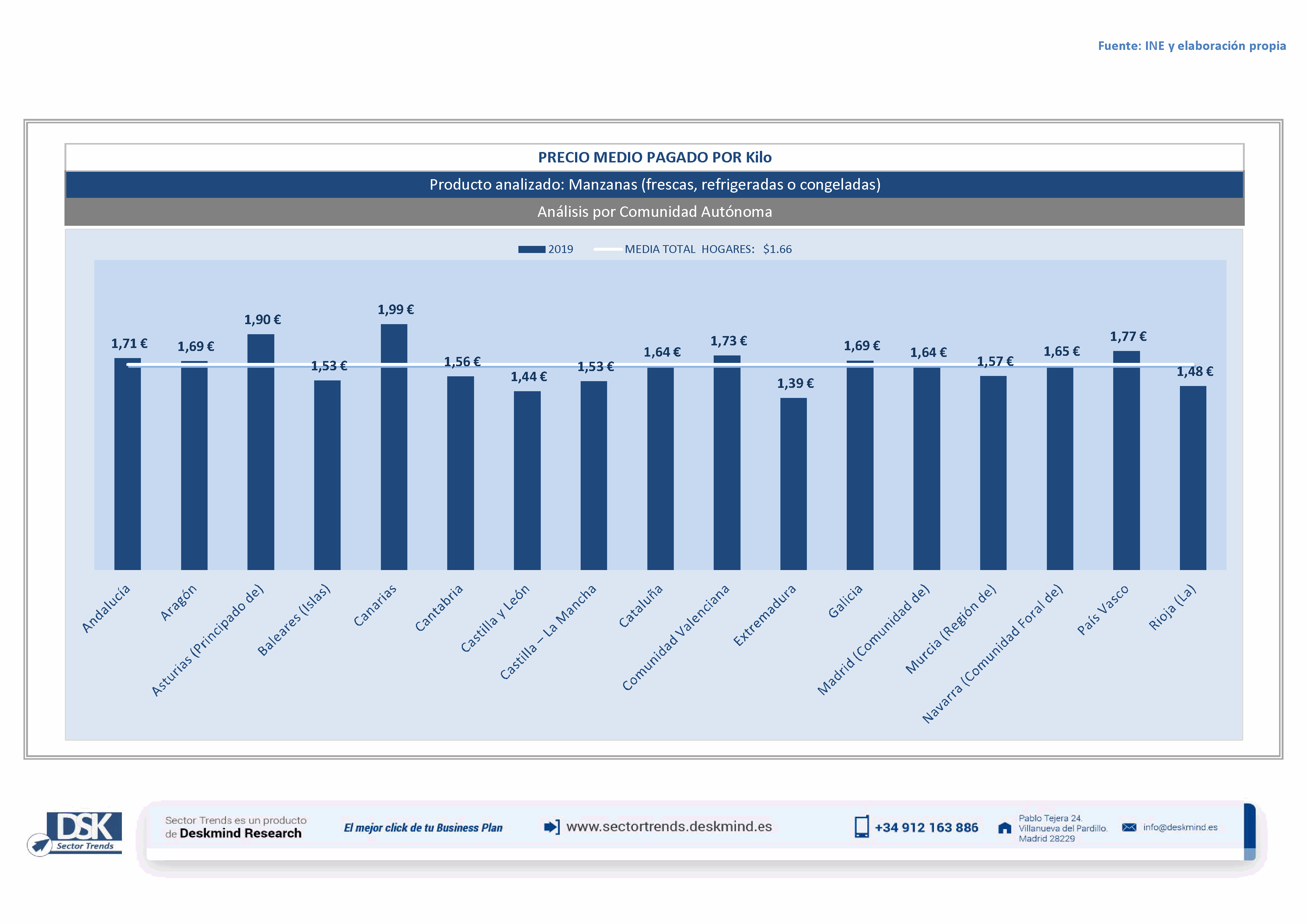 Infografía precio medio por comunidad autónoma de Manzanas (frescas, refrigeradas o congeladas)