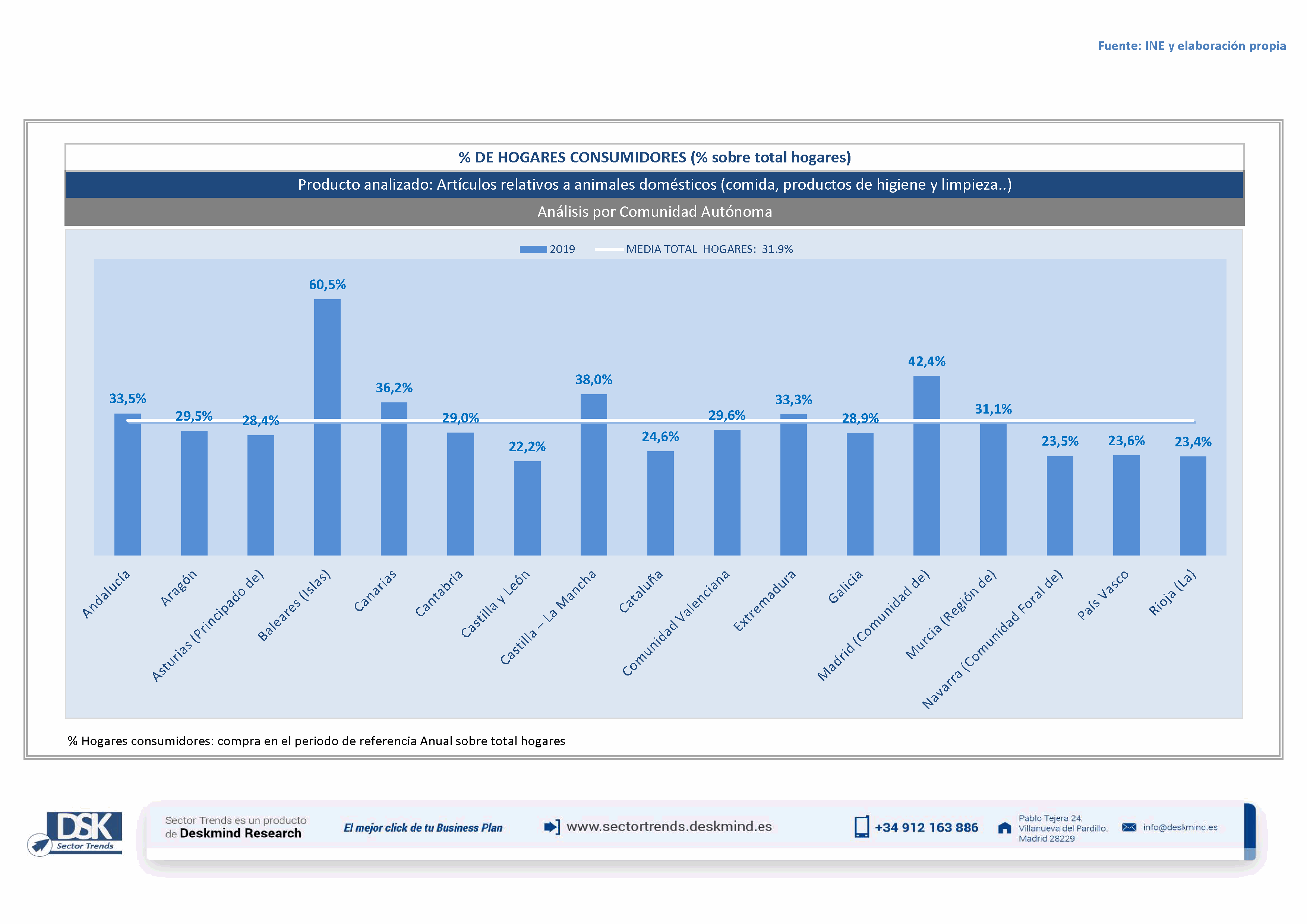 Infografía % hogares por comunidad autónoma de Artículos relativos a animales domésticos (comida, productos de higiene y limpieza,,)