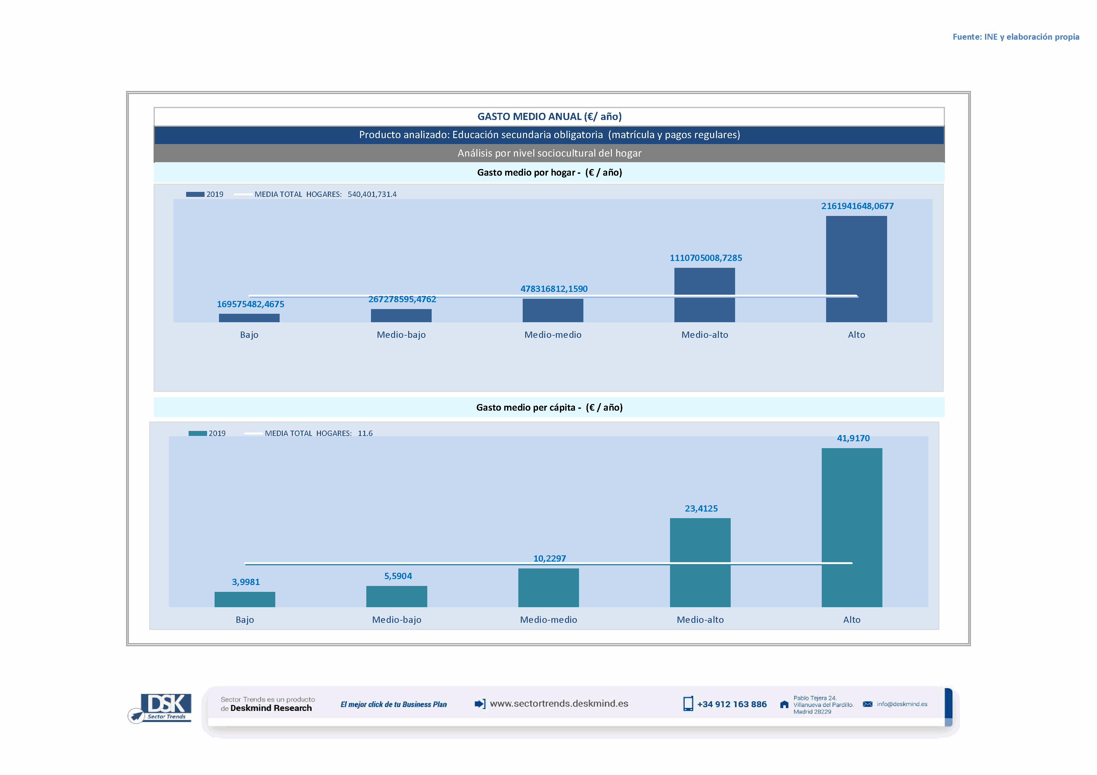 Infografía gasto medio por nivel social de Educación secundaria obligatoria (matrícula y pagos regulares)