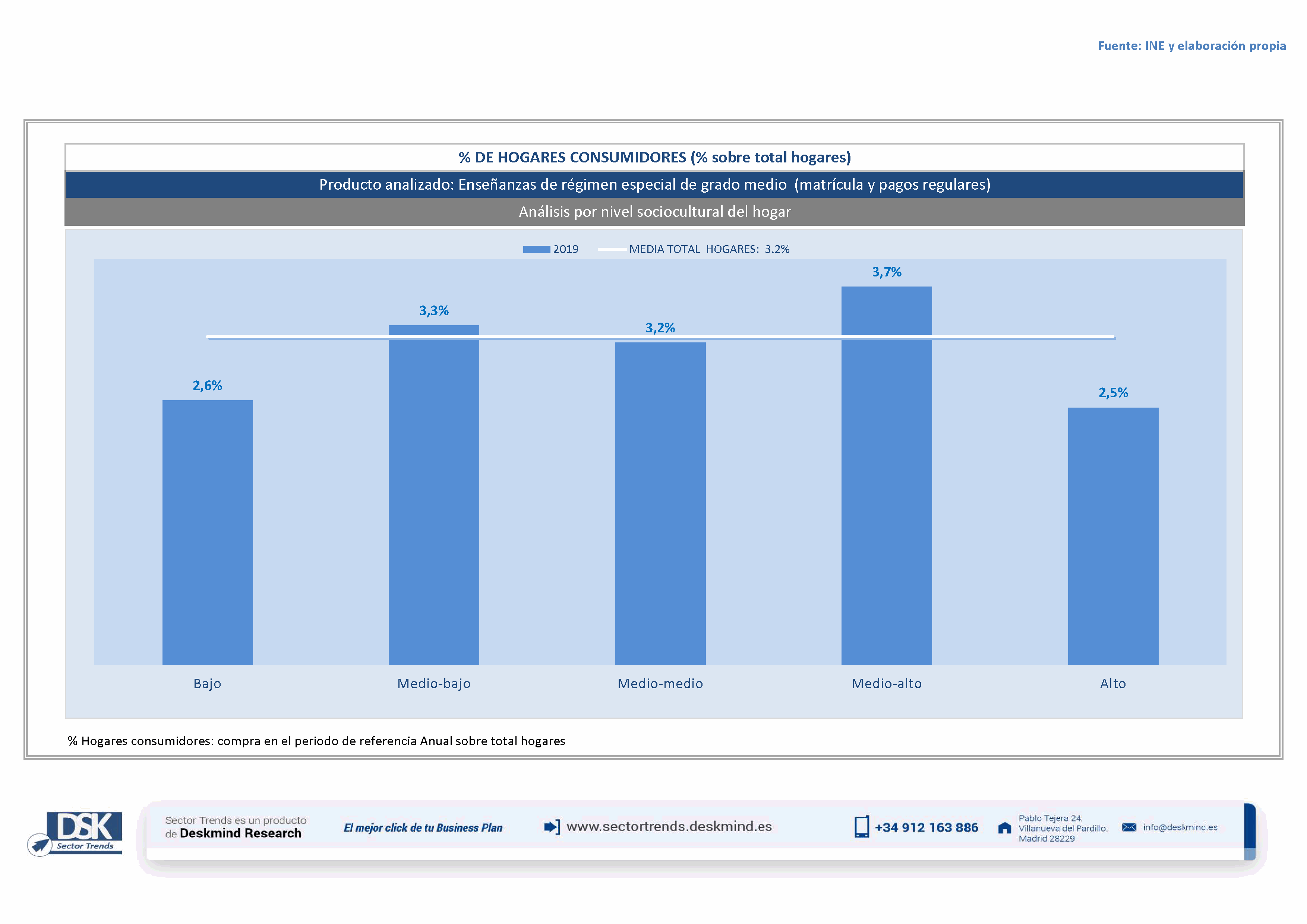 Infografía % hogares por nivel social de Formación profesional de grado medio (matrícula y pagos regulares)