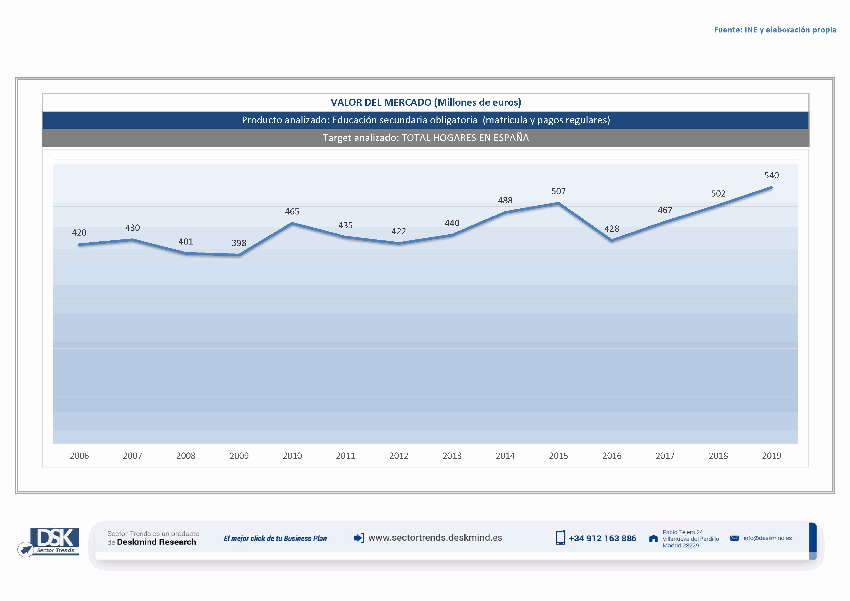 Gráfico evolutivo valor del mercado de Educación secundaria obligatoria (matrícula y pagos regulares)