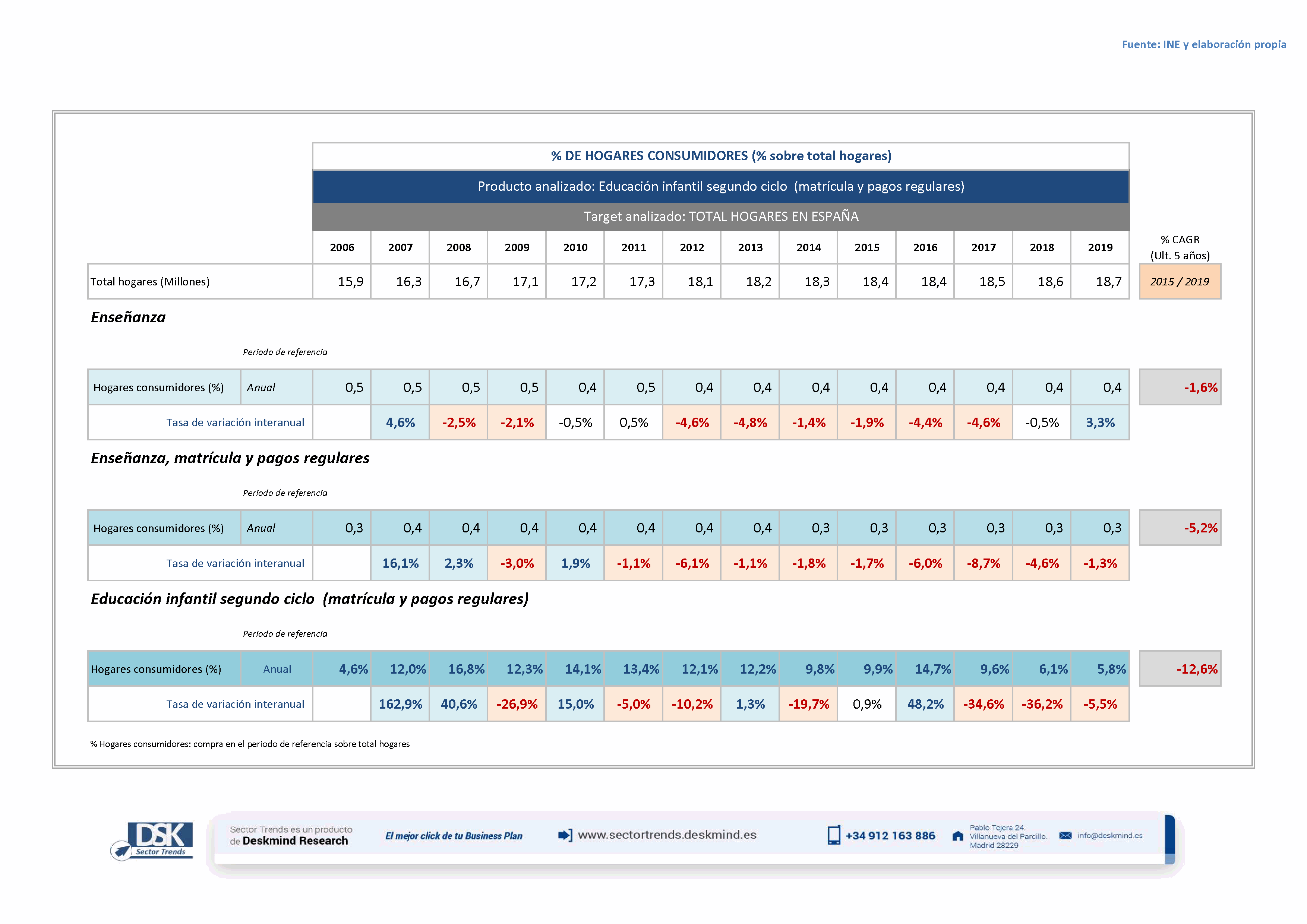Cuadro estadístico % de hogares consumidores de Educación infantil primer ciclo (matrícula y pagos regulares)